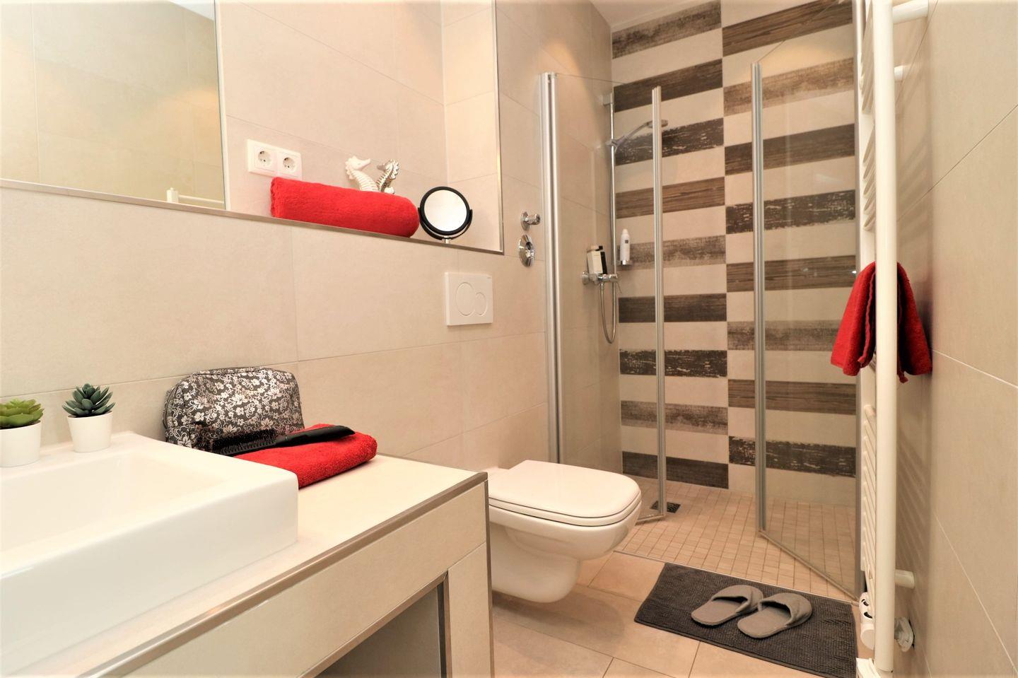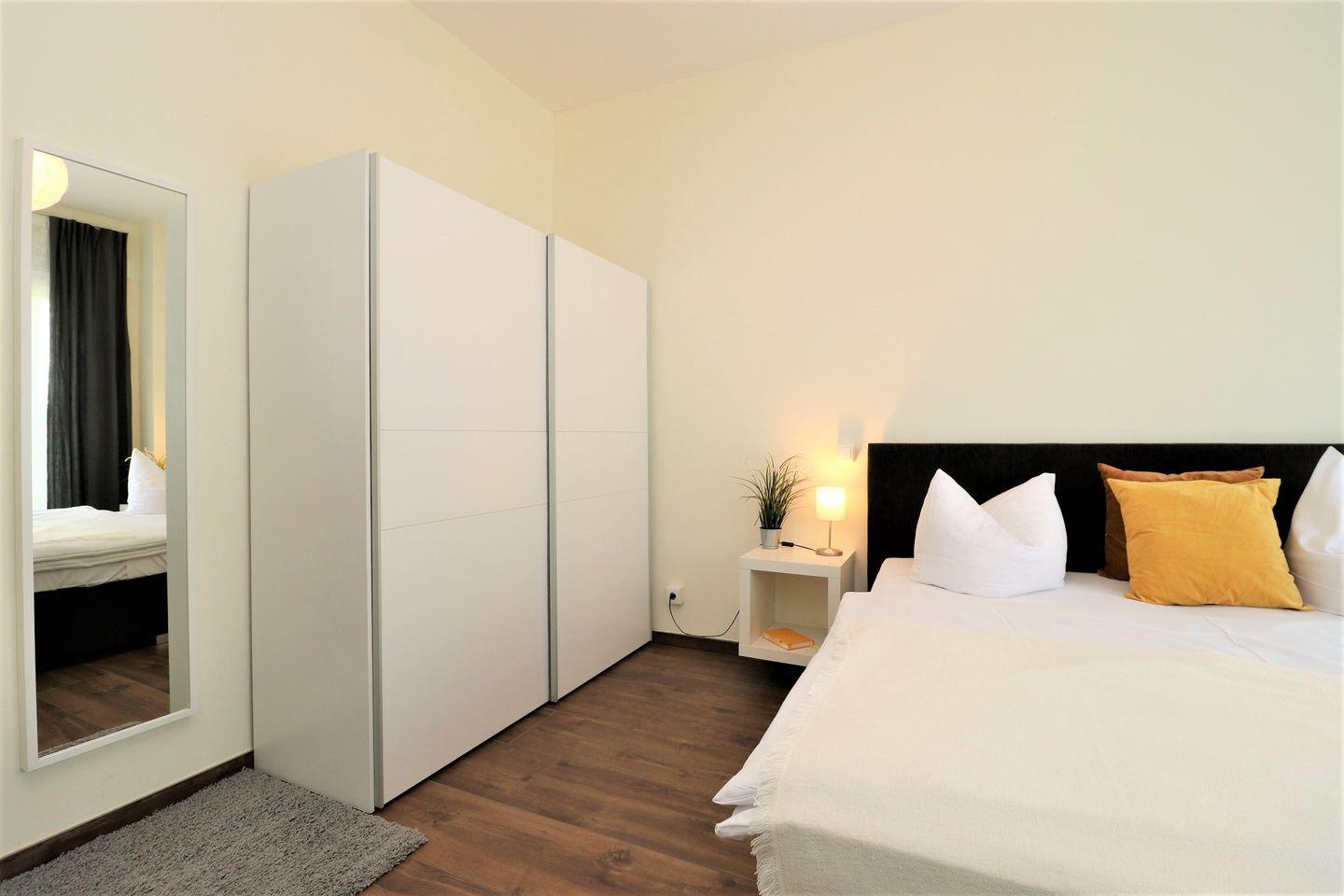 Das charmante Appartement bietet auf 57 qm gemütlichen Wohnraum und eignet sich ideal für bis zu 4 Personen. Es befindet sich im Erdgeschoss und verfügt über eine Süd-West-Terrasse, auf der Sie entspannte Stunden verbringen und die Sommerabende genießen können. Das Wohnzimmer ist mit einer bequemen Schlafcouch (120 cm breit) ausgestattet, sodass bei Bedarf eine zusätzliche Schlafgelegenheit zur Verfügung steht. Die Küchenzeile ermöglicht Ihnen, Ihre Mahlzeiten bequem selbst zuzubereiten. Im Schlafzimmer erwartet Sie ein bequemes Doppelbett, das zum Erholen und Entspannen einlädt. Das moderne Badezimmer ist mit einer Dusche und einem WC ausgestattet. Für den Pkw gibt es einen Stellplatz auf dem Grundstück der Ferienanlage. Haustiere sind nicht erlaubt, ebenso wie das Rauchen in der Unterkunft. Damit Sie während Ihres Aufenthalts immer in Verbindung bleiben können, steht Ihnen kostenfreies WLAN zur Verfügung.