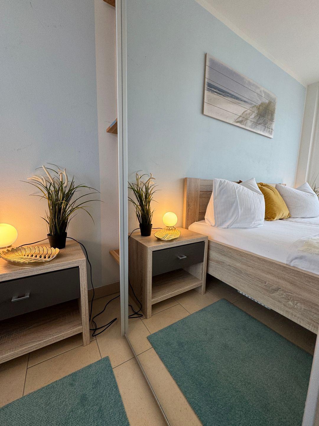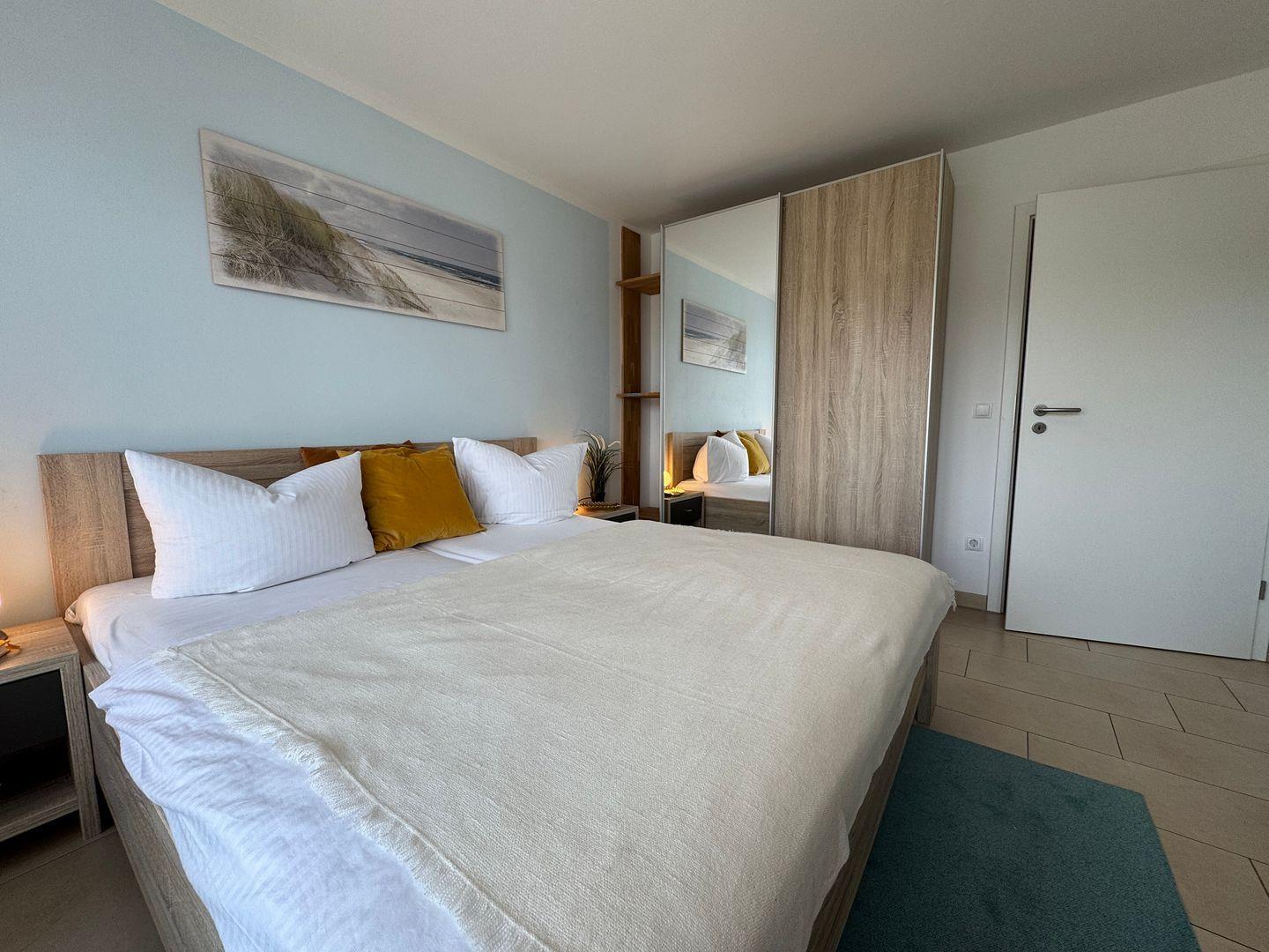 Dieses gemütliche Appartement bietet auf 48 qm Platz für bis zu 4 Personen und eignet sich ideal für einen entspannten Aufenthalt. Auf dem Nord-West-Balkon können Sie laue Sommerabende genießen oder ein gemütliches Frühstück im Freien verbringen. Das Wohnzimmer ist mit einer Schlafcouch (140 x 200 cm) ausgestattet, die eine komfortable Schlafgelegenheit bietet. Die Küchenzeile ermöglicht es Ihnen, Ihre Mahlzeiten selbst zuzubereiten. Im Schlafzimmer finden Sie ein bequemes Doppelbett, das zum Entspannen einlädt. Das Badezimmer ist mit einer Dusche und einem WC ausgestattet. Für Ihre Kommunikation steht Ihnen kostenloses WLAN zur Verfügung, sodass Sie stets mit Ihren Lieben in Kontakt bleiben können. Ein besonderes Highlight: Am nahegelegenen Strand steht Ihnen saisonbedingt ein Strandkorb zur Verfügung, damit Sie den Sommer in vollen Zügen genießen können. Und auch Ihr vierbeiniger Liebling ist in diesem Appartement herzlich willkommen!