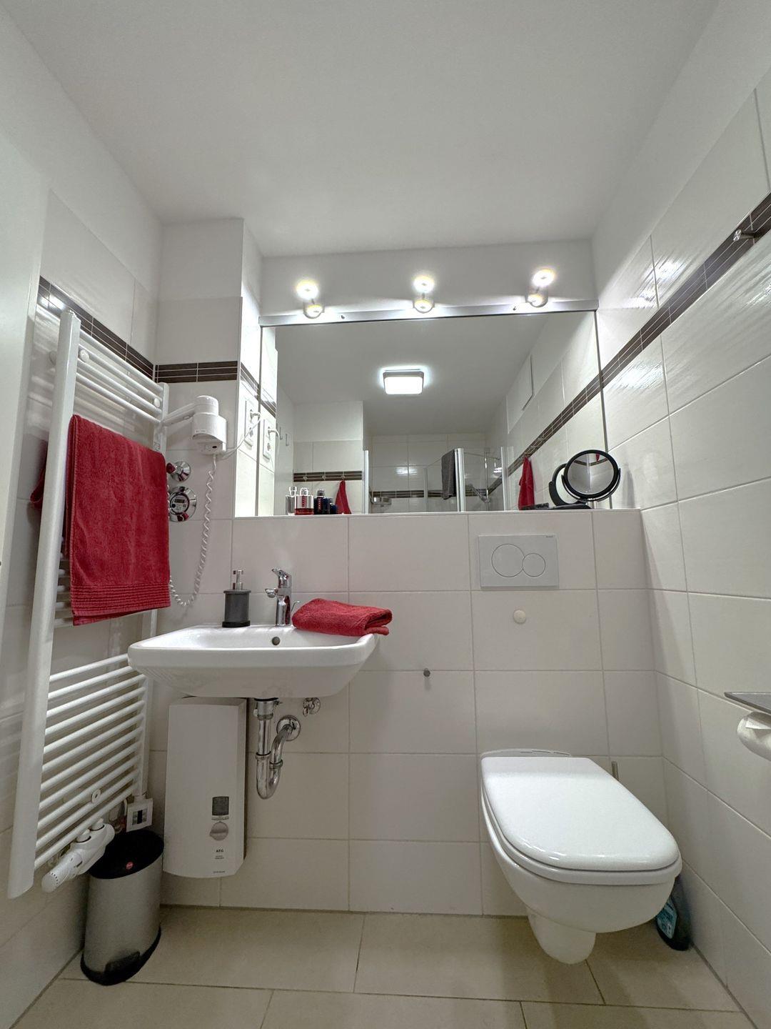 Das moderne Badezimmer ist mit Dusche und WC ausgestattet und rundet den Wohnkomfort des Appartements ab.