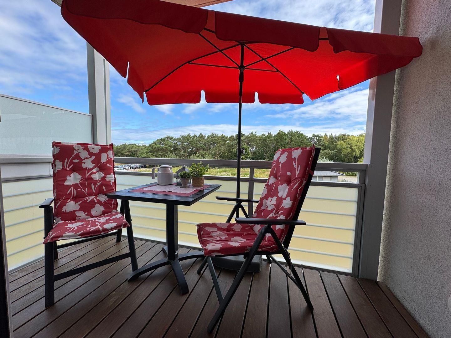 Der Nord-Balkon lädt dazu ein, die frische Ostseeluft zu genießen und entspannte Stunden im Freien zu verbringen – ob beim Frühstück am Morgen oder bei einem ruhigen Abend nach einem Strandspaziergang.