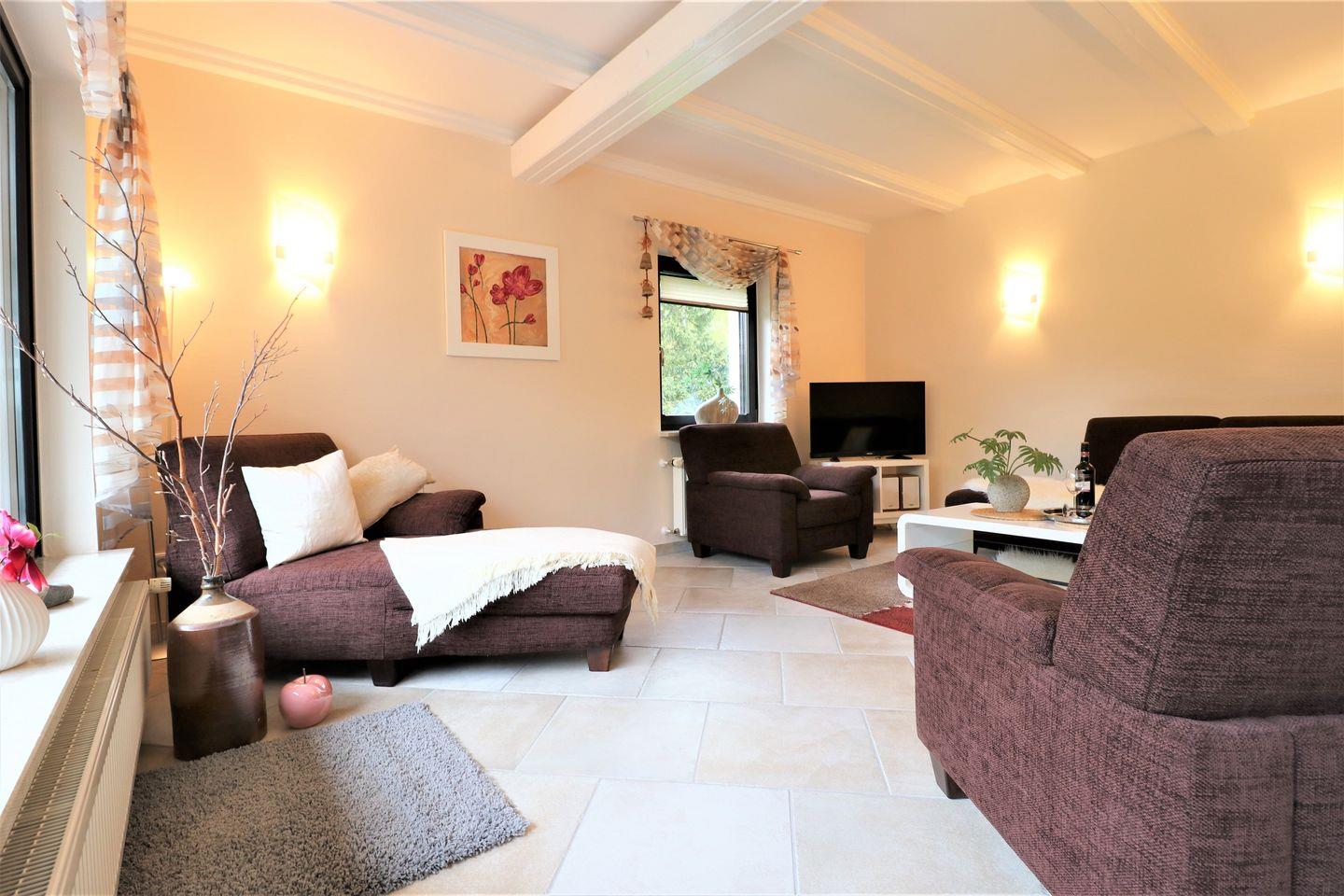 Das Ferienhaus mit 120 qm Wohnfläche bietet Platz für max. 6 Personen. Es verfügt im Erdgeschoss über ein gemütliches Wohnzimmer, eine Küche, DU/WC. Auf der Terrasse können Sie gesellige Abende verbringen. Im Obergeschoss befinden sich 3 Schlafzimmer mit Doppelbetten für erholsamen Schlaf, ein Bad mit Wanne, um ein entspannendes Bad zu genießen, DU und WC. Auf dem Grundstück stehen Ihnen 2 Pkw-Stellplätze zur Verfügung. Haustiere und das Rauchen sind in diesem Haus nicht erlaubt. Kostenfreies WLAN steht zur Verfügung, damit Sie mit Ihren Lieben in Kontakt bleiben können.