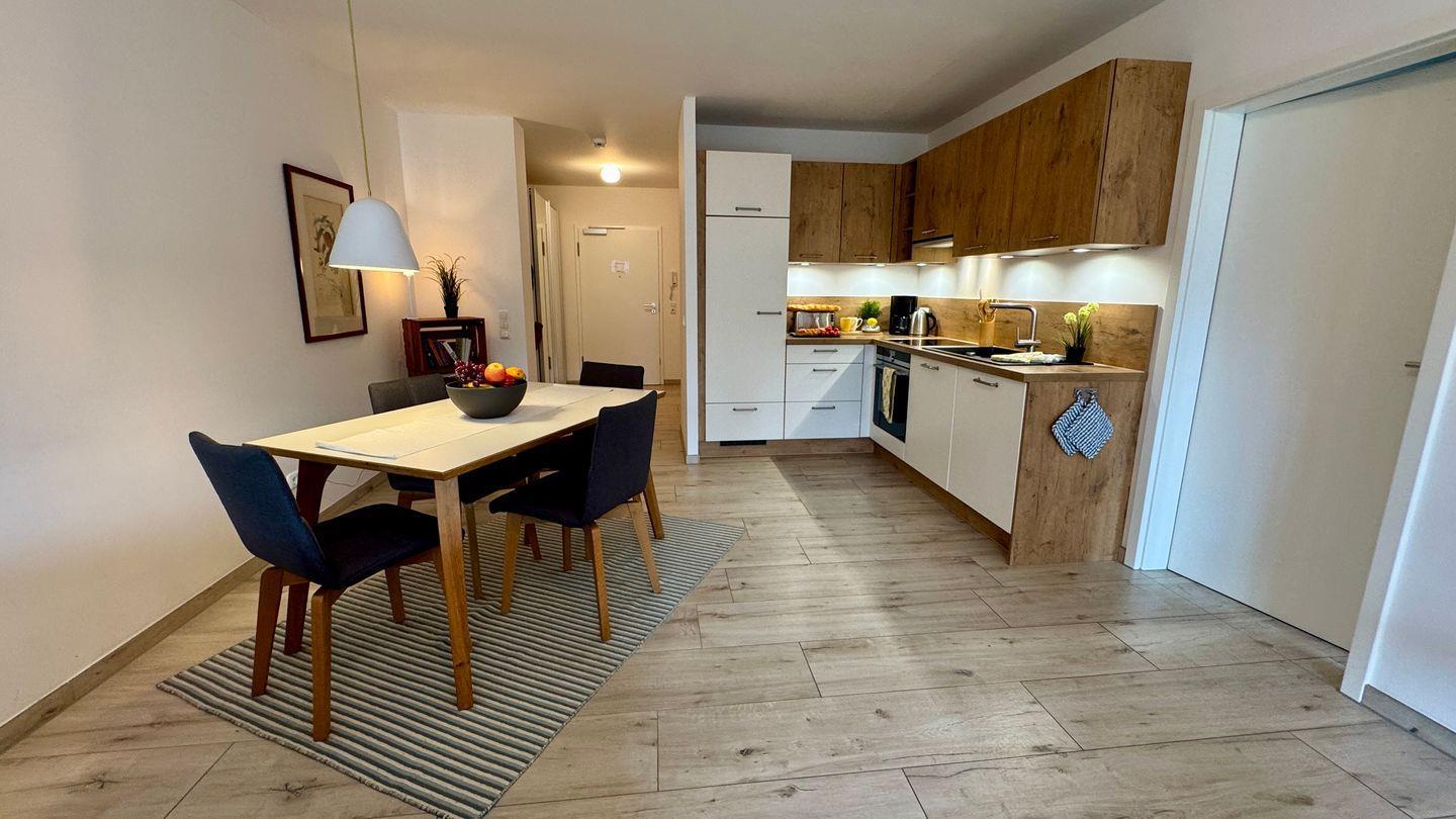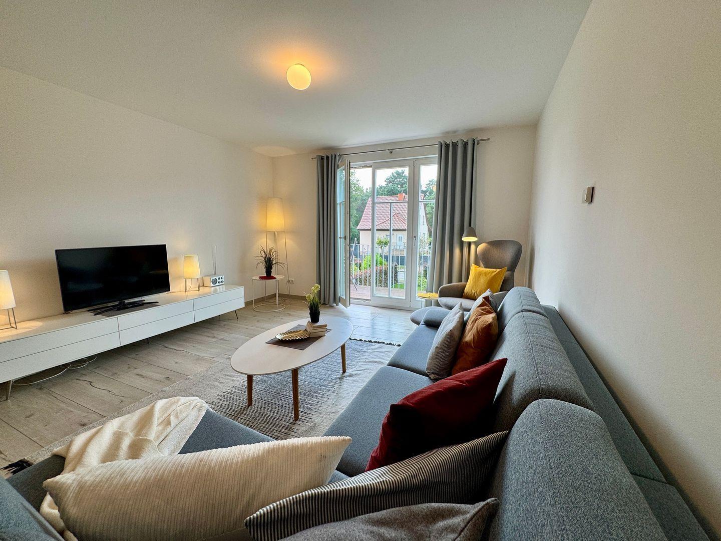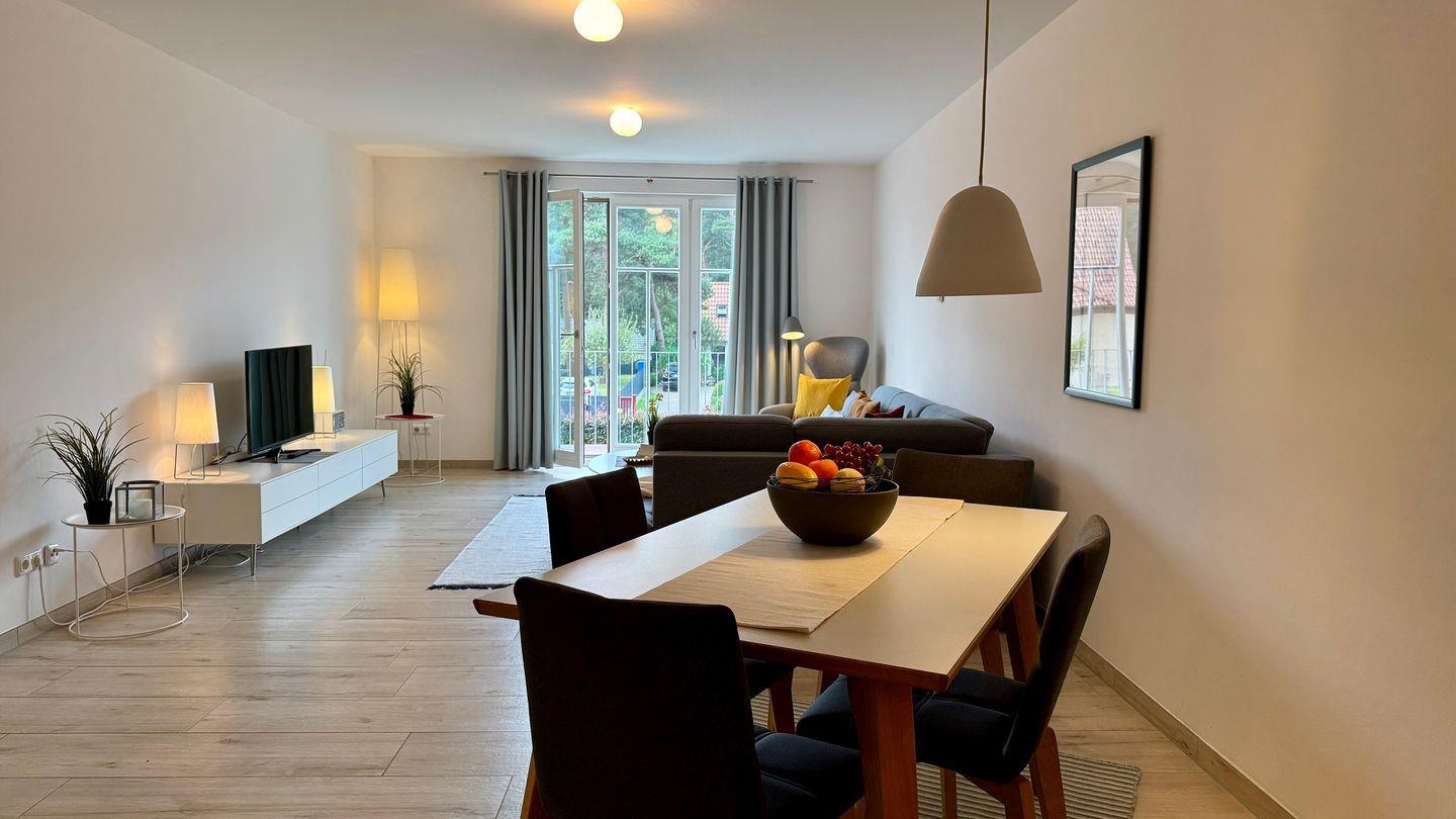Dieses 74 m² große Appartement im Obergeschoss bietet Platz für bis zu 4 Personen und ist der ideale Ort für eine entspannte Auszeit. Das helle und freundliche Wohnzimmer ist mit einer Schlafcouch ausgestattet, die bequem Platz für 2 Personen bietet. So können Sie den gemeinsamen Urlaub in geselliger Runde genießen, ohne auf den Komfort einer eigenen Schlafgelegenheit zu verzichten. In der integrierten Küchenzeile haben Sie alles, was Sie benötigen, um leckere Mahlzeiten zuzubereiten – ideal, um gemeinsam mit Ihren Lieben zu kochen und zu genießen. Das Schlafzimmer bietet mit einem einladenden Doppelbett (2 x 2 Meter) viel Platz für 2 weitere Personen, sodass Sie nach einem erlebnisreichen Tag erholsamen Schlaf finden können. Das Badezimmer ist eine wahre Wellness-Oase und lädt mit einer Dusche, einem WC sowie einer Sauna zum Entspannen ein. Genießen Sie entspannte Momente und lassen Sie den Alltag hinter sich. Auf dem Balkon können Sie die lauen Sommerabende bei frischer Luft genießen und den Tag ausklingen lassen. Ein Pkw-Stellplatz innerhalb der Anlage steht Ihnen zur Verfügung, sodass Sie Ihr Fahrzeug bequem parken können. Haustiere sind im Appartement leider nicht gestattet, und das Rauchen ist ebenfalls nicht erlaubt. Für Ihre digitale Kommunikation steht Ihnen während Ihres Aufenthalts kostenloses W-LAN zur Verfügung.