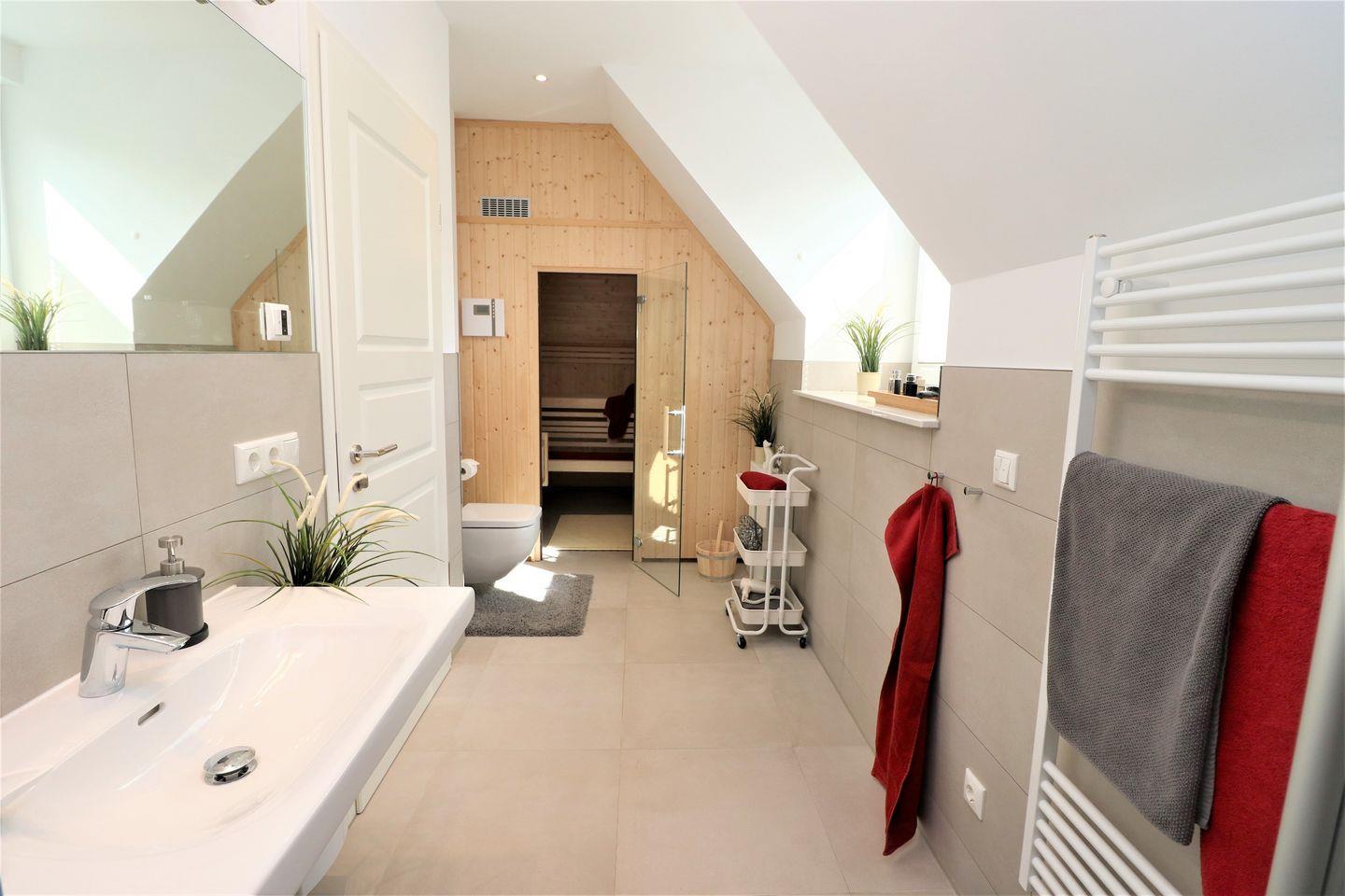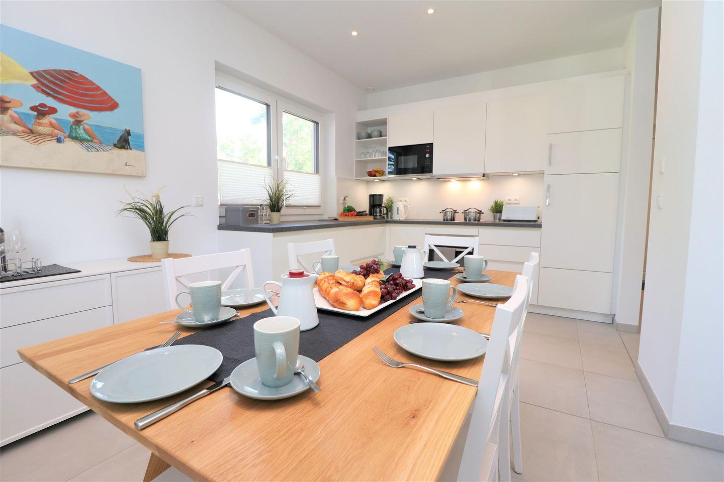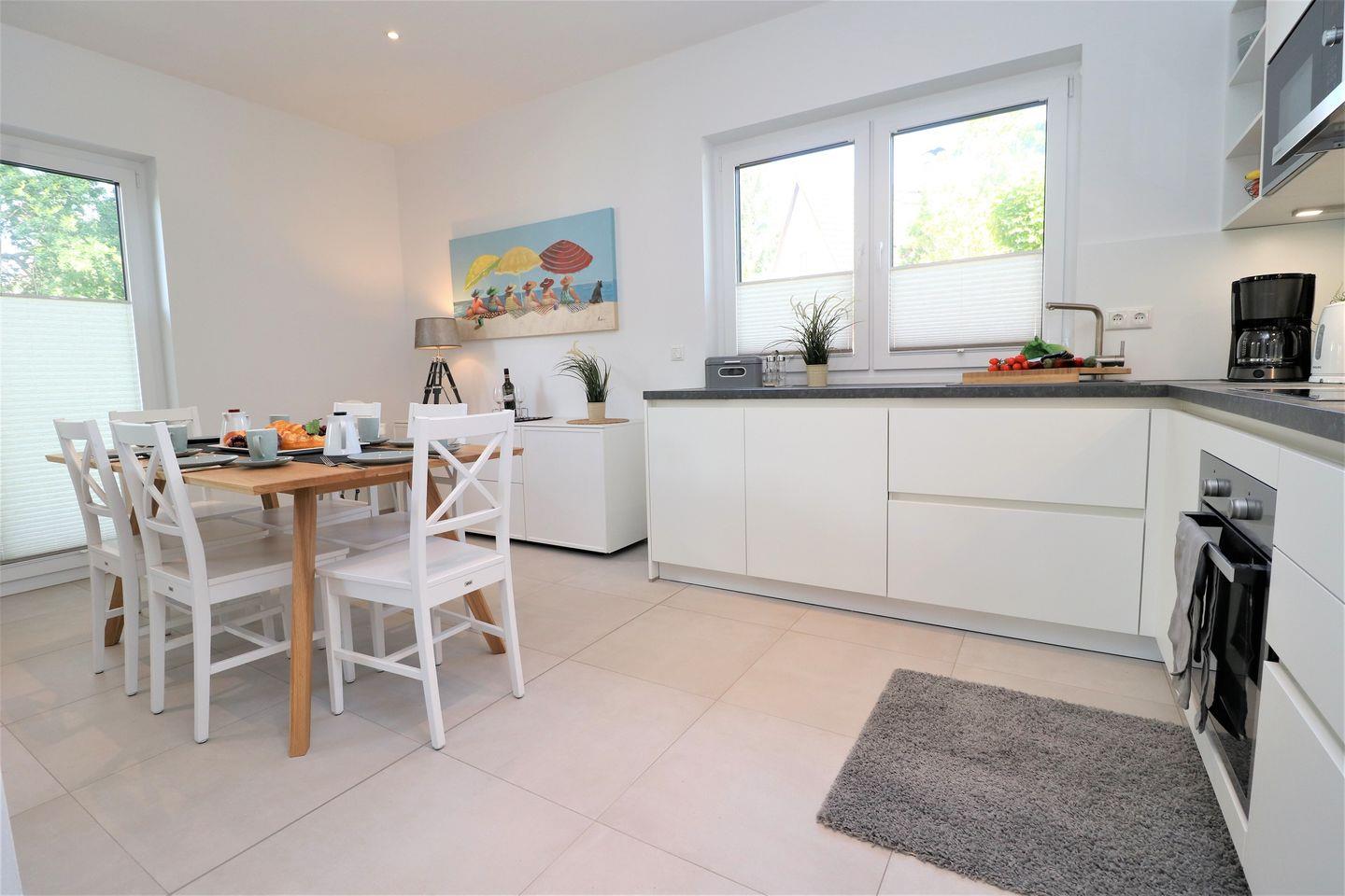 Die Villa „Ostseekind“ ist ein Ort zum Entspannen und Wohlfühlen, eingebettet in viel Grün im Ostseebad Dierhagen, Ortsteil Neuhaus. Auf einer großzügigen Wohnfläche von 95 m² finden bis zu 6 Personen ausreichend Platz für einen gemeinsamen Urlaub mit Familie oder Freunden. Das gemütliche Wohnzimmer ist mit bequemen Möbeln ausgestattet und bietet viel Raum für gemeinsame Spieleabende oder entspannte Gespräche. Die 3 Schlafzimmer im Haus sind ideal für erholsame Nächte. Zwei Schlafzimmer befinden sich im Obergeschoss, eines davon ist zusätzlich mit einer Schlafcouch ausgestattet. Ein weiteres Schlafzimmer befindet sich im Spitzboden und ist mit zwei Einzelbetten eingerichtet. Das Badezimmer ist eine wahre Wellness-Oase und lädt mit einer Sauna und allen weiteren Annehmlichkeiten zum Entspannen und Erholen ein. Auf der Terrasse können Sie die lauen Sommerabende genießen oder gesellige Grillabende mit der ganzen Familie verbringen. Ein Grill gehört selbstverständlich zur Ausstattung des Hauses. Haustiere sind leider nicht gestattet, und das Rauchen ist im gesamten Haus nicht erlaubt. Um Ihre schönsten Urlaubserlebnisse zu teilen, steht Ihnen während Ihres Aufenthalts kostenloses W-LAN zur Verfügung.