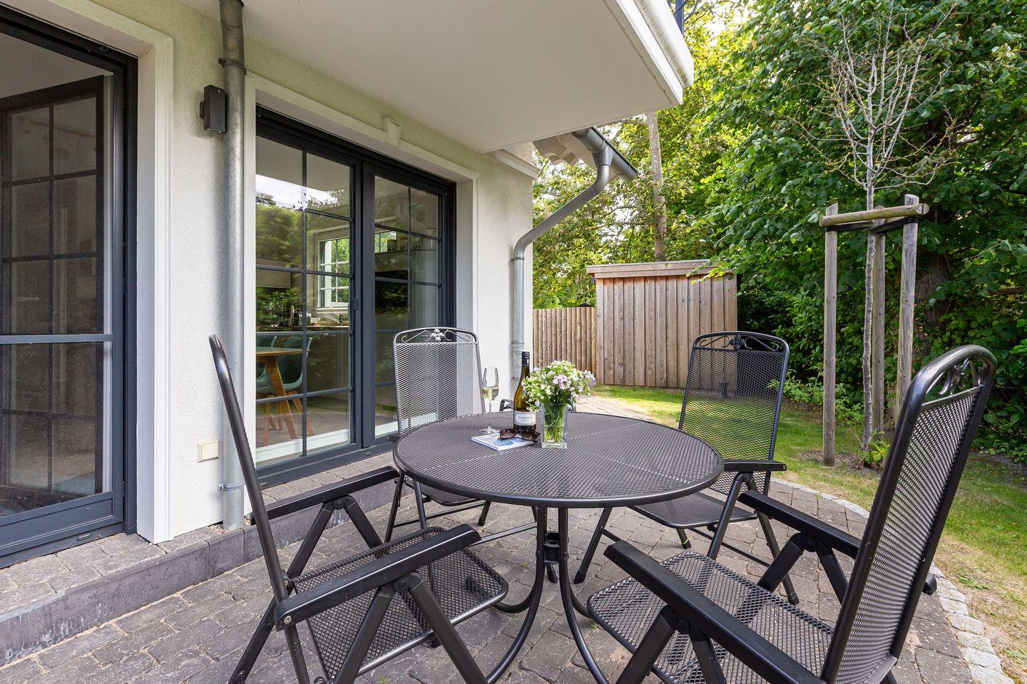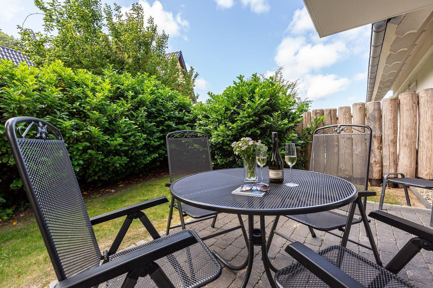 Der Außenbereich lädt mit einer großzügigen Steinterrasse und komfortablen Gartenmöbeln zum Verweilen ein. Der eingefriedete Garten bietet euch dabei ausreichend Privatsphäre, sodass ihr entspannte Stunden an der frischen Ostseeluft ungestört genießen könnt. Zum Ferienhaus gehören außerdem zwei PKW-Stellplätze und abschließbare Fahrradplätze. Die Kombination aus unmittelbarer Nähe zum Meer, hochwertiger Einrichtung und einer traumhaften Lage machen dieses Haus zu einem perfekten Ort für entspannte und erlebnisreiche Tage.