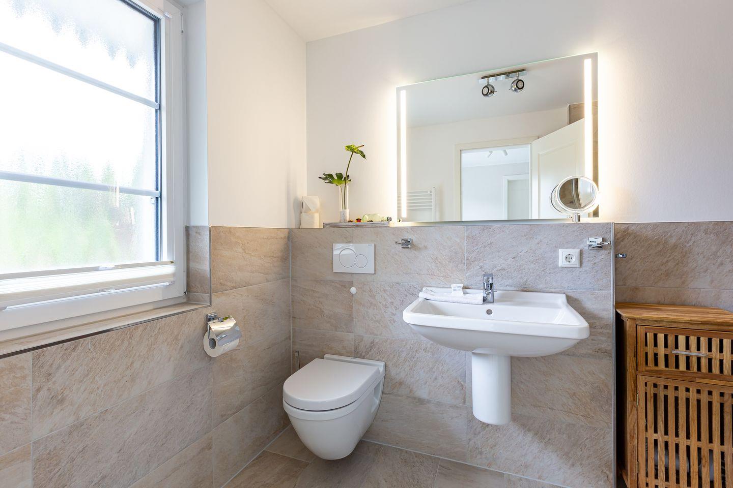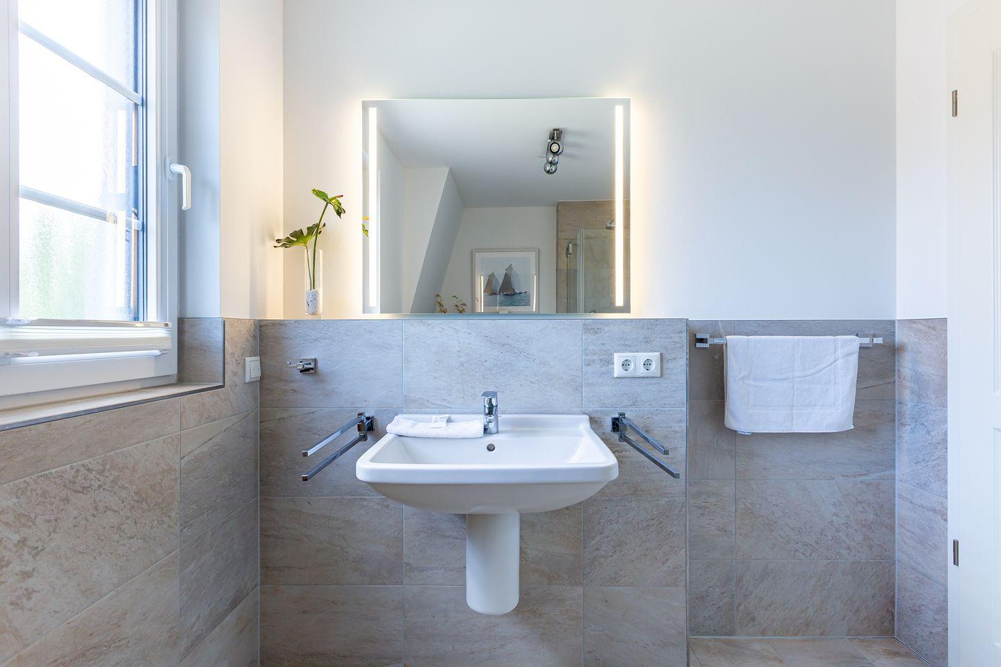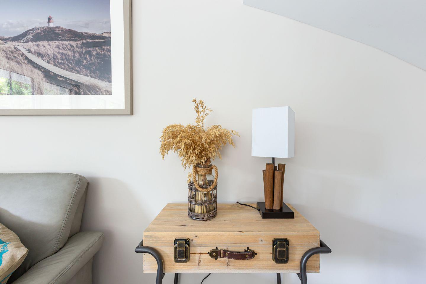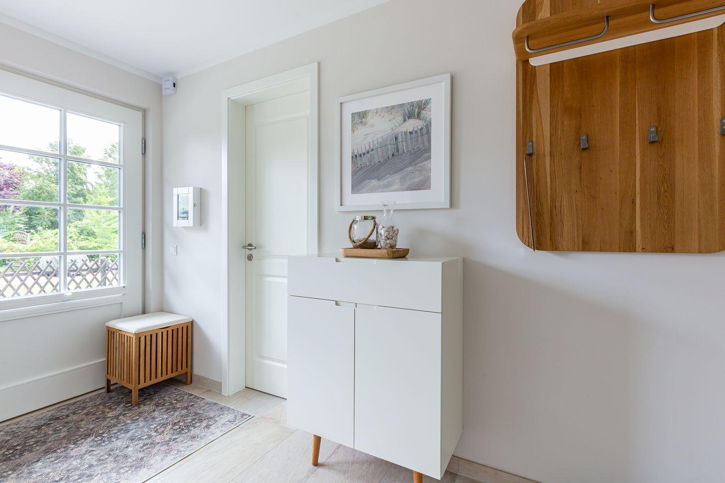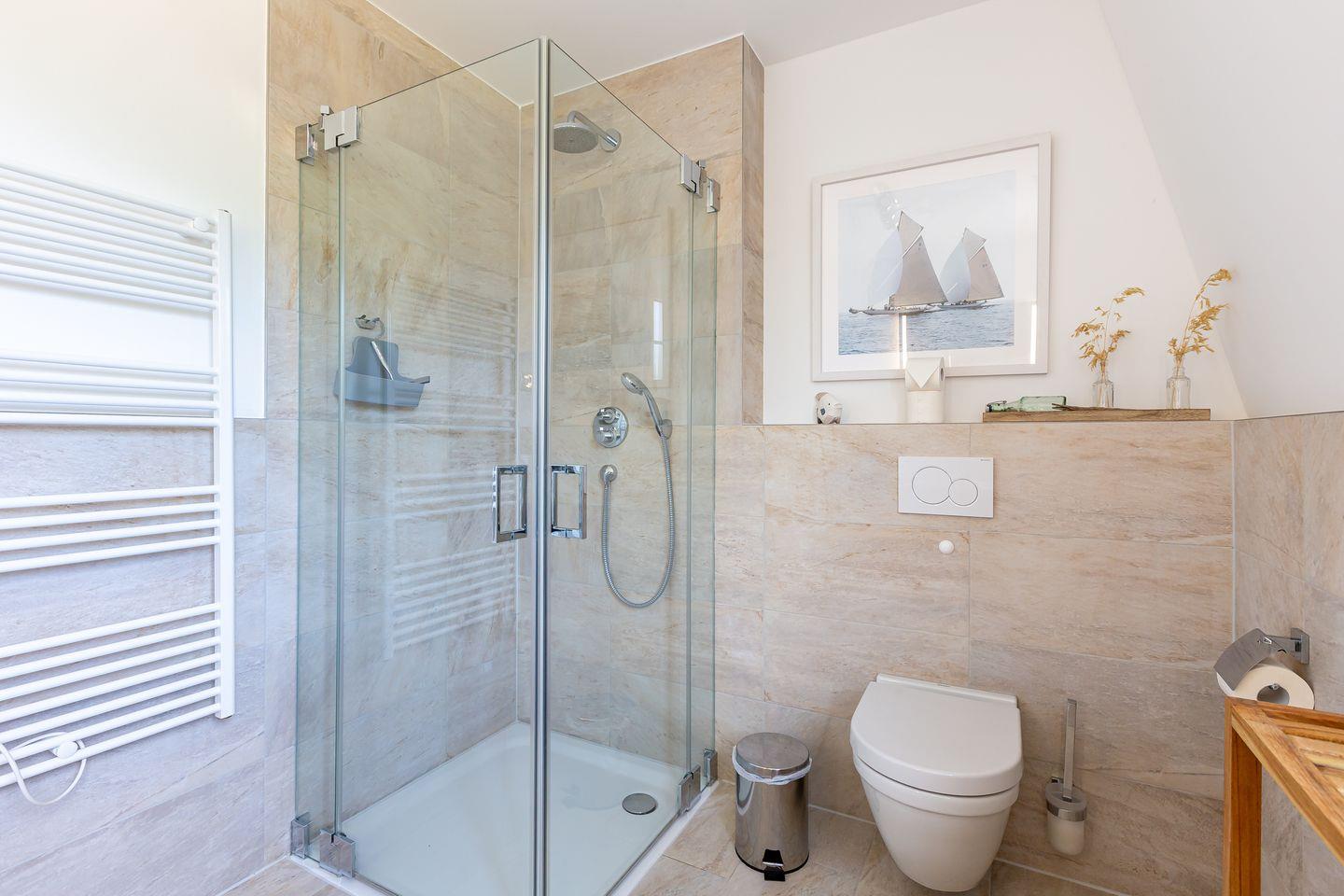Die wunderschöne Doppelhaushälfte bietet Platz für bis zu vier Personen und besticht durch ihre großzügigen, lichtdurchfluteten Räume im Seaside-Stil. Im Erdgeschoss befindet sich der einladende Wohn- und Essbereich mit direktem Zugang zur Terrasse. Hier könnt ihr bei einer Tasse Kaffee den Tag beginnen oder nach einem langen Strandspaziergang die Abendsonne genießen. Die offene Gestaltung des Wohnraums schafft eine warme und entspannte Atmosphäre, in der ihr euch sofort wohlfühlen werdet. Zudem befindet sich im Erdgeschoss ein modernes Badezimmer mit Sauna und Dusche.