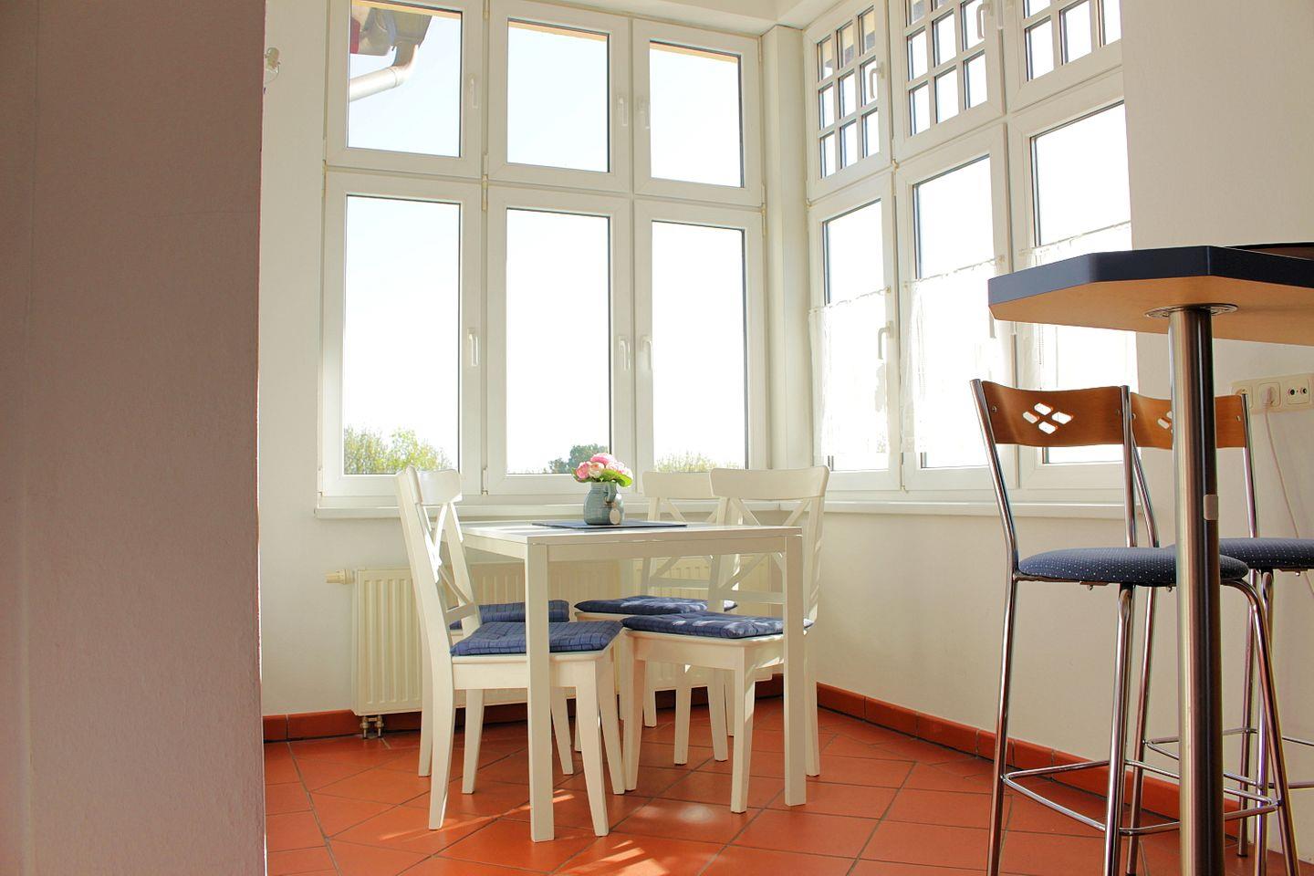 Das 70 m² große Appartement 03 befindet sich im 2. OG und verfügt über ein Wohnzimmer mit Schlafcouch, ein Schlafzimmer (Doppelbett), eine verglaste und möblierte Veranda, eine voll ausgestattete separate Küche mit eigenem Essplatz, kostenfreies Wlan und ein Duschbad. Haustiere sind auf Anfrage gestattet, ein PKW-Stellplatz steht zur Verfügung.