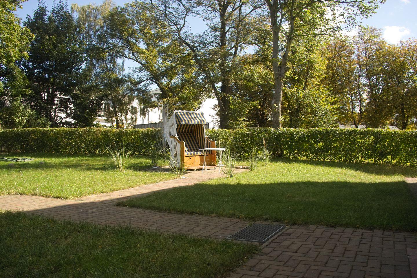 Der Außenbereich mit Garten, einem Strandkorb, Grillmöglichkeit, 2 PKW Stellplätze und ein Fahrradschuppen runden das Angebot ab.