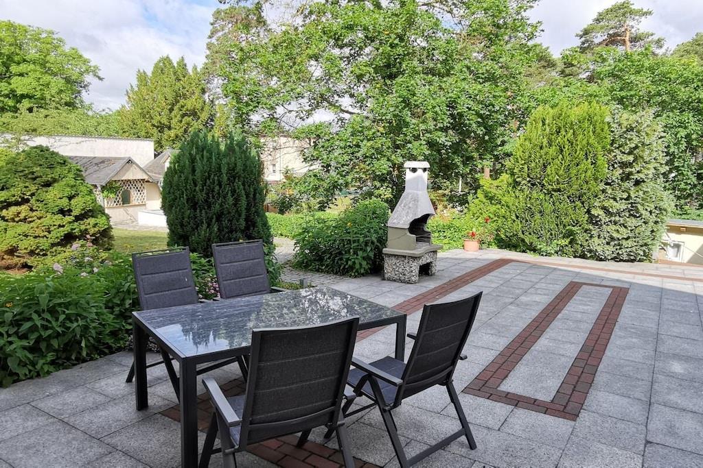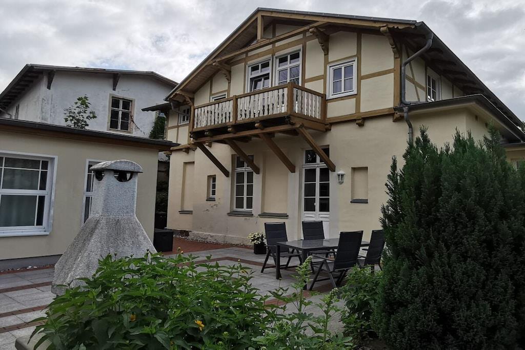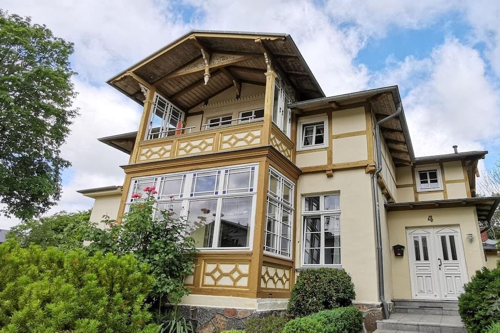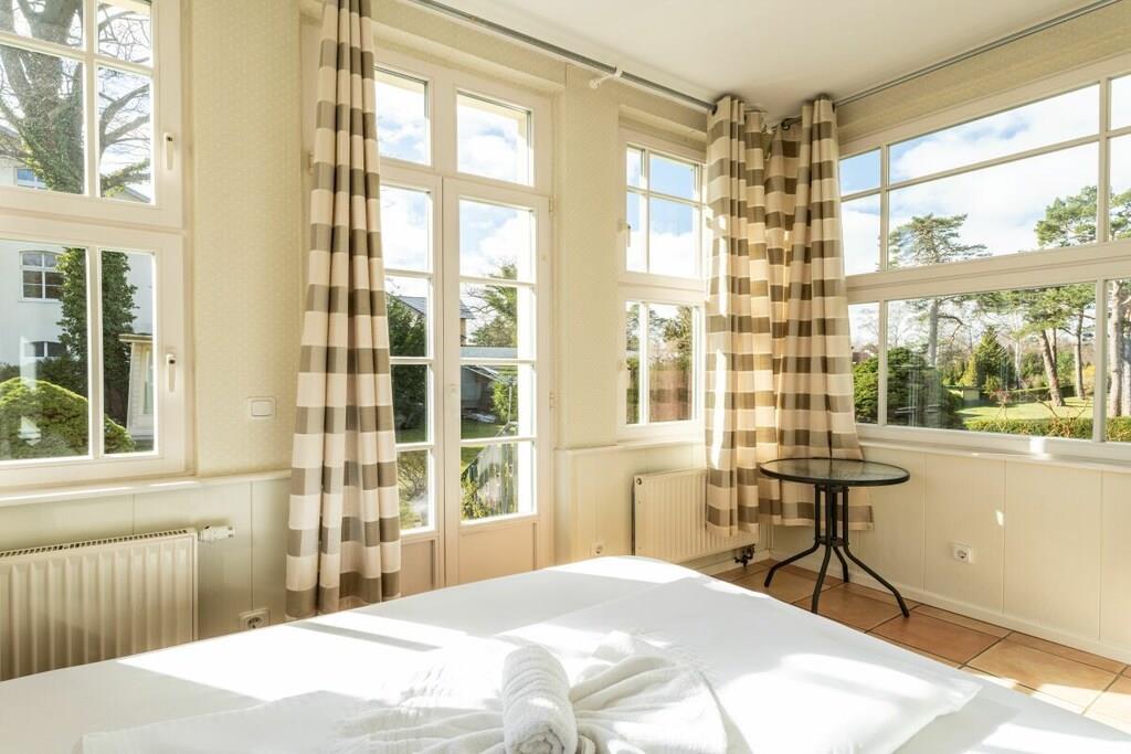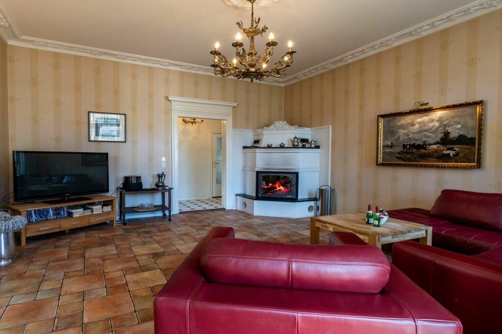 Die Fewo Salon bietet insgesamt sechs Schlafplätze. Im Schlafzimmer befinden sich ein großes Doppelbett (200x200) und ein Etagenbett (2x 90x200). In der abgeschlossenen Veranda können Sie auf einem Doppelbett (140x200) ruhen. Ein großer Einbaukamin lädt zum Ausklang eines romantischen Abends ein. Im modernen Bad sind eine Erlebnisdusche und ein Whirlpool zum Entspannen vorhanden. Weiterhin gibt es kleines separates Gäste-WC. Auf zwei großzügigen Terrassen können Sie das weitläufige Grundstück genießen. Es gibt einen separaten Stellplatz und Unterstellmöglichkeit für Fahrräder. Auf dem Grundstück der Villa gibt es vier weitere Wohneinheiten mit insgesamt 10 weiteren Schlafplätzen, die auch zusammen gebucht werden können.