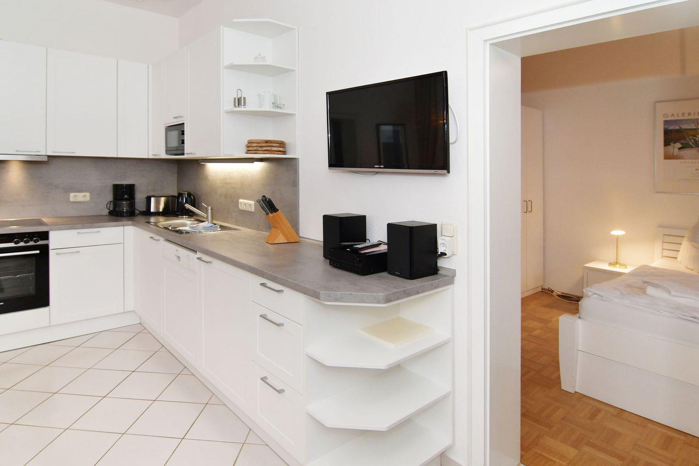 Gemeinschaftseinrichtungen mit Münzwaschmaschine und Trockner befinden sich im Nachbarhaus "am Kliff" und können mit genutzt werden