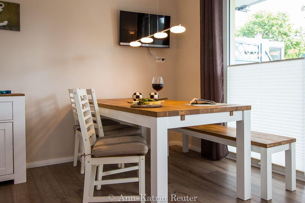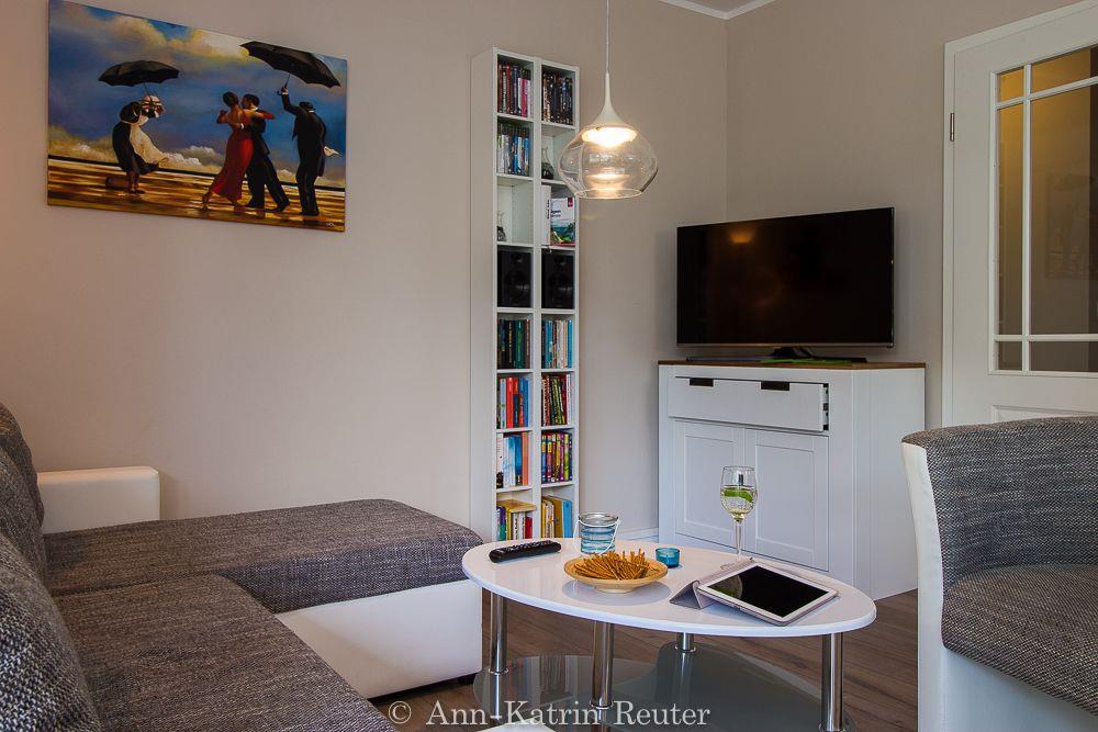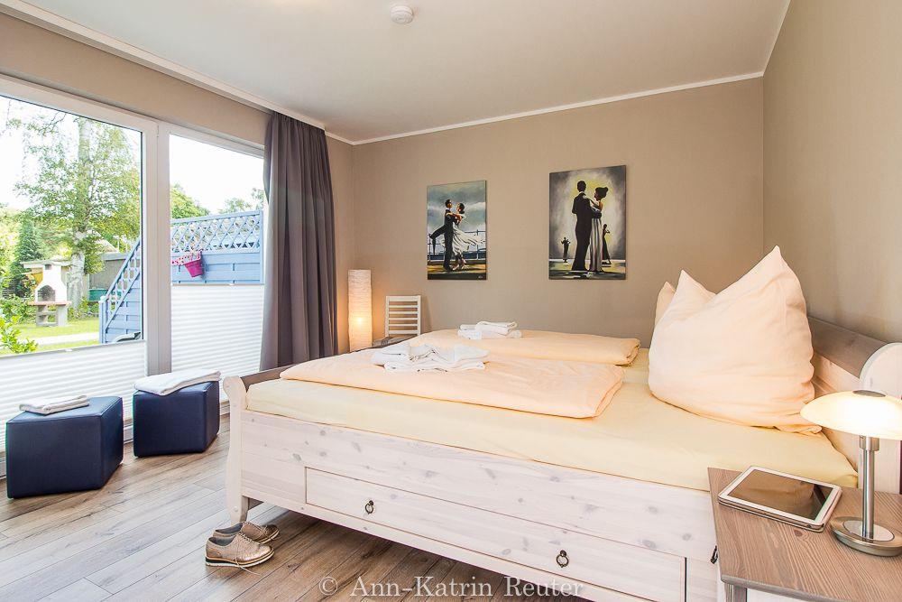 Das helle und gemütliche Ferienappartement "Meeresrauschen" befindet sich im Erdgeschoss des neu erbauten Hauses und bietet Schlafgelegenheiten für maximal 5 Personen. Es gliedert sich in ein geräumiges Elternschlafzimmer mit Doppelbett und Terrassenzugang, ein Kinderschlafzimmer mit Flachbildfernseher und 2 Einzelbetten, ein modernes Badezimmer mit ebenerdiger Dusche sowie einen großen Wohn-/Essbreich mit einem Schlafsofa für 1 Person, Flachbild- TV und offener voll ausgestatteter Küchenzeile. Vom Wohnbereich und dem Elternschlafzimmer gelangen Sie über große bodentiefe Fenster auf die nach Osten ausgerichtete ca. 20 qm große Terrasse mit Gartenmöbeln. Genießen Sie hier z.B. Ihren Start in den Strandtag bei einem ausgiebigen Frühstück oder lassen Sie den Abend bei einem Glas Rotwein ausklingen. Für Ihren unbeschwerten Familienurlaub stehen im Appartement "Meeresrauschen" außerdem weitere Annehmlichkeiten wie kostenloses WLAN und eine Mutlimediaecke mit Blue Ray Player, XBox und diversen Filmen, Büchern und Spielen zur Verfügung. Für gesellige Abendstunden können Sie den gemeinschaftlichen Garten mit Grill- und Sitzmöglichkeit nutzen. Die Ostsee befindet sich nur etwa 80 m entfernt und ist ganz einfach und bequem zu Fuß, ohne lästiges Parkplatz suchen zu erreichen.