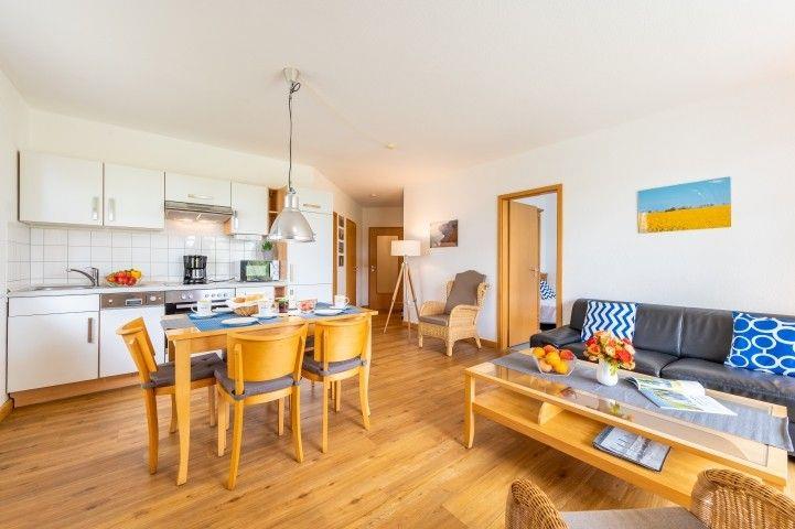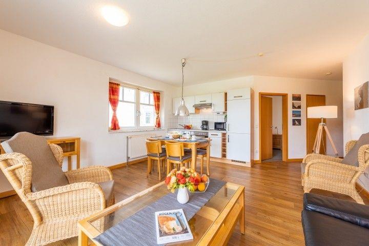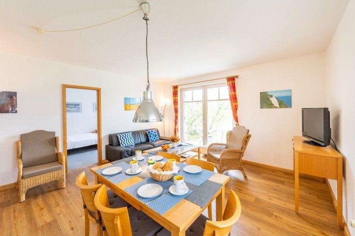 Die helle und moderne Ferienwohnung hat eine Wohnfläche von ca. 63 m², befindet sich im Erdgeschoss des Hauses "Arkonablick" und bietet mit zwei Schlafzimmern Platz für 4 Personen. Ein Schlafzimmer bietet Ihnen ein Doppelbett, das zweite Schlafzimmer verfügt über 2 Einzelbetten.