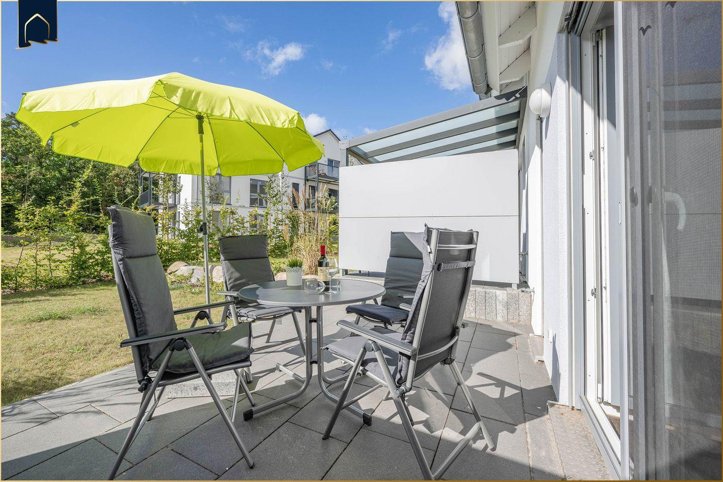 Die sonnige Terrasse mit Gartenmöbeln und Sonnenschirm lädt zum Entspannen im Freien ein. Kinder sind herzlich willkommen, ein Treppengitter ist vorhanden. Ein zusätzlicher Bonus: Das Ferienhaus ist für Allergiker geeignet, damit Sie unbeschwert Ihren Urlaub genießen können.