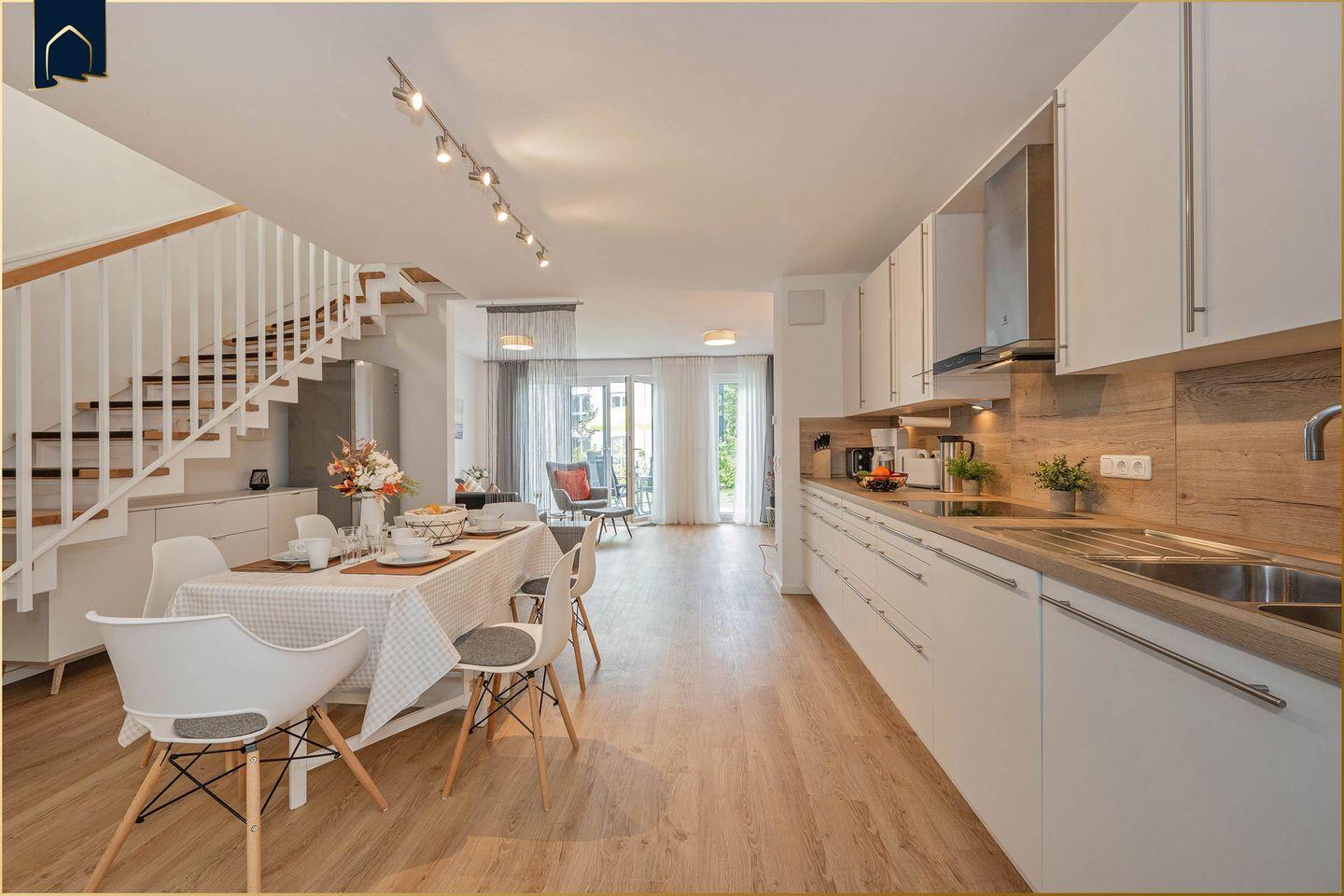 Voll ausgestattete Küche & stilvolles Wohnambiente
