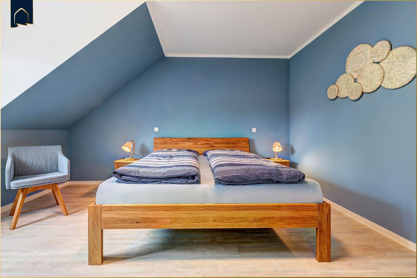 Die offene Küche lässt keine Wünsche offen: Spülmaschine, Mikrowelle, Kühlschrank mit Gefrierfach, Backofen, Herd, Toaster, Wasserkocher und Kaffeemaschine stehen bereit. Auch an Küchenutensilien, Geschirr und Besteck wurde gedacht. Wer im Urlaub gerne kocht oder gemeinsam isst, findet im offenen Wohn- und Essbereich viel Platz dafür. Zusätzlich punktet das Ferienhaus mit einem Schreibtisch und gutem WLAN – ideal für Workation oder gelegentliche Arbeit unterwegs. Ein privater Parkplatz gehört ebenso zur Ausstattung wie TV in beiden Schlafzimmern, Bücher, Spiele, Fußbodenheizung, Fliegengitter und vieles mehr.