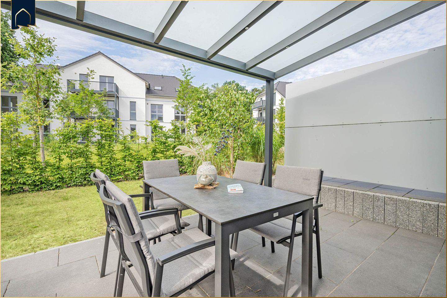 Die Lage ist ideal für Erholungssuchende und Aktivurlauber gleichermaßen: Nur etwa 700?Meter trennen Sie vom feinsandigen Ostseestrand, der bequem zu Fuß erreichbar ist. Ein idyllischer See liegt in nur 400?Metern Entfernung – perfekt für Spaziergänge oder ein kleines Picknick. Einkaufsmöglichkeiten befinden sich etwa 1300?Meter entfernt, Restaurants bereits in 400?Metern – so lässt sich der Urlaub ganz ohne Auto genießen. Der schöne Garten mit überdachter Terrasse, Gartenmöbeln und Liegewiese lädt zum Verweilen ein. Hier können Sie den Tag bei einem Glas Wein ausklingen lassen und den Blick ins Grüne genießen.