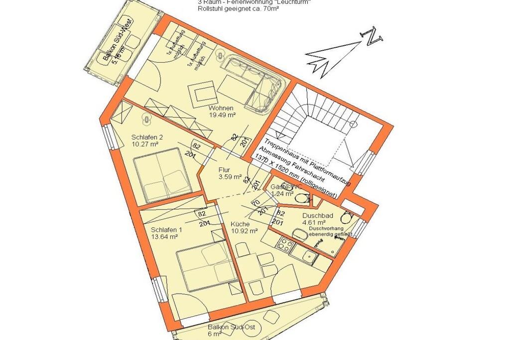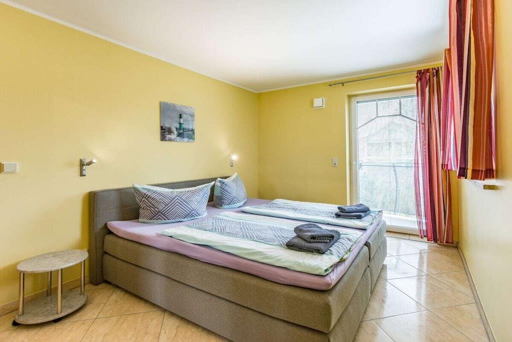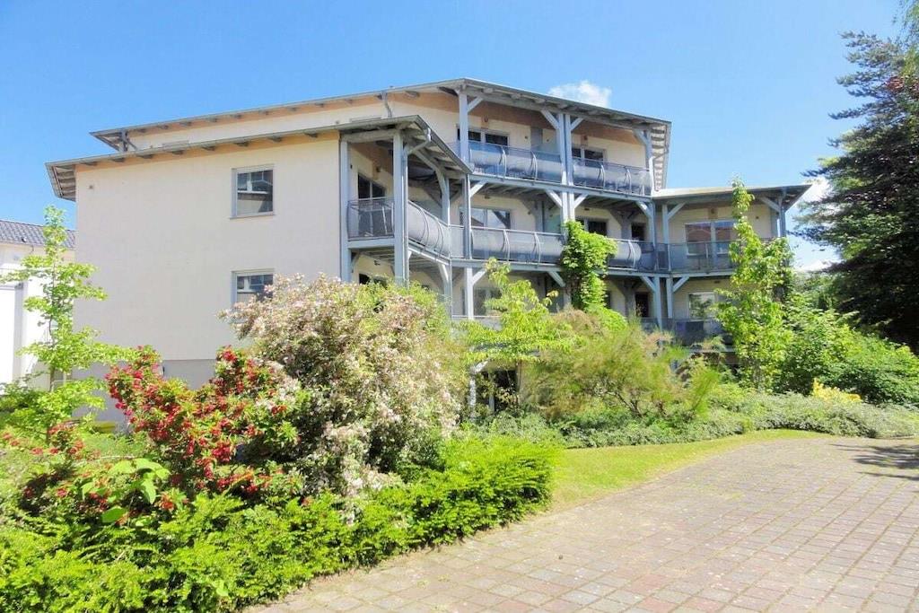 Vores 3-værelses ferielejlighed "Leuchtturm" ligger på øverste etage og er let tilgængelig via en elevator, som er handicapvenlig og nem at komme til. Her kan du nyde din ferie og lade bilen blive hjemme et stykke tid. Den brede Østersøstrand, den smukke lange promenade, restauranter og barer, butikker, byskoven og meget mere ligger inden for gåafstand. Lejligheden har 2 soveværelser: det ene soveværelse har en boxmadras (180x200) med en Bonnell-madras og topmadras, og det andet soveværelse har en dobbeltseng (160x200). To altaner mod sydvest og sydøst tilbyder en vidunderlig udsigt. Ud over et fuldt udstyret brusebad er der et separat gæstetoilet. Køkkenet er fuldt udstyret med opvaskemaskine, mikrobølgeovn, køleskab med frostboks, brødrister, elkedel, filterkaffemaskine osv. Sengelinned (20,00 EURO/gæst) og håndklæder (10,00 EURO/gæst) kan bestilles efter anmodning.