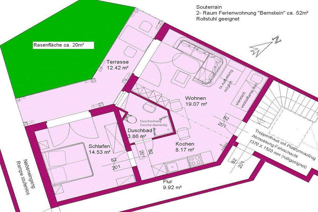 Kælderetage: (åbent køkken(, tekøkken, spisebord, kakkelovn, kogeplade, elkedel, brødrister, kaffemaskine, ovn, mikrobølgeovn, opvaskemaskine , køleskab, fryser, varme), stue / spisestue(, , enkeltseng, Fjernsyn, spisebord, DVD-afspiller, radio, CD-afspiller, varme, havemøbler), soveværelse(, dobbeltseng, varme), badeværelse(, toilet, bruser, håndvask, varme, føntørrer)) , Internetadgang, tørretumbler, vaskemaskine, varme, terrasse(havemøbler), parkering, strygebræt, strygejern, tørreskab, Vaskeripakke mod et gebyr, telefon
