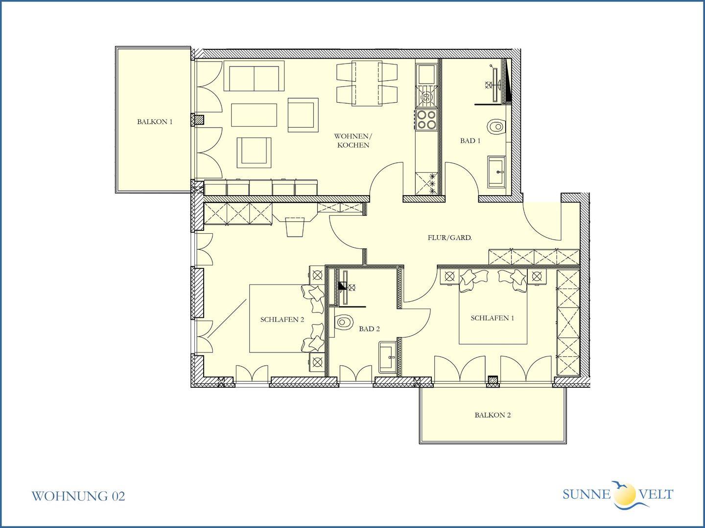 Die 21 Ferienwohnungen im Haus Sunnevelt sind in drei Kategorien unterteilt, 2-Raum-Appartements 55 - 65 qm, 3-Raum-Appartements 70 - 80 qm, 3-Raum-Appartements 70 - 90 qm mit Kamin. Das Haus liegt zentral im historischen Ortskern des ehemaligen Dorfes Brunshaupten, dem heutigen Stadtteil Kühlungsborn-Ost. Im August 2017 eröffneten wir das Haus Sunnevelt gelegen am südlichen Ende der Strandstraße, der beliebten Flanier- und Bummelmeile. Jede der 21 Ferienwohnungen (ausgestattet mit Küche, Tiefgarage, WLAN, Lift, Sauna im Haus, alles Nichtraucherwohnungen, Boxspringbetten, Balkonen) wurden individuell gestaltet.