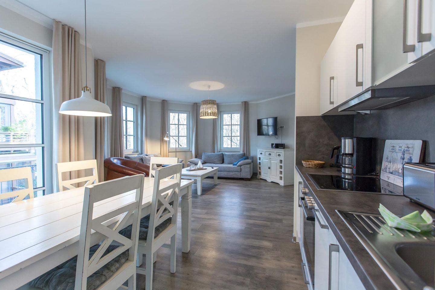 Die 18 Appartements sind ganzjährig buchbar. Das gesamte Ferienobjekt wird komplett über eine Erdwärme-Fußbodenheizung beheizt. Auf Teppichböden wurde generell verzichtet. 18 Stellplätze sowie Abstellmöglichkeiten für, z.B. Fahrräder befinden sich geschützt vor Wind und Wetter in der Tiefgarage des 2014 gebauten Appartementhauses.