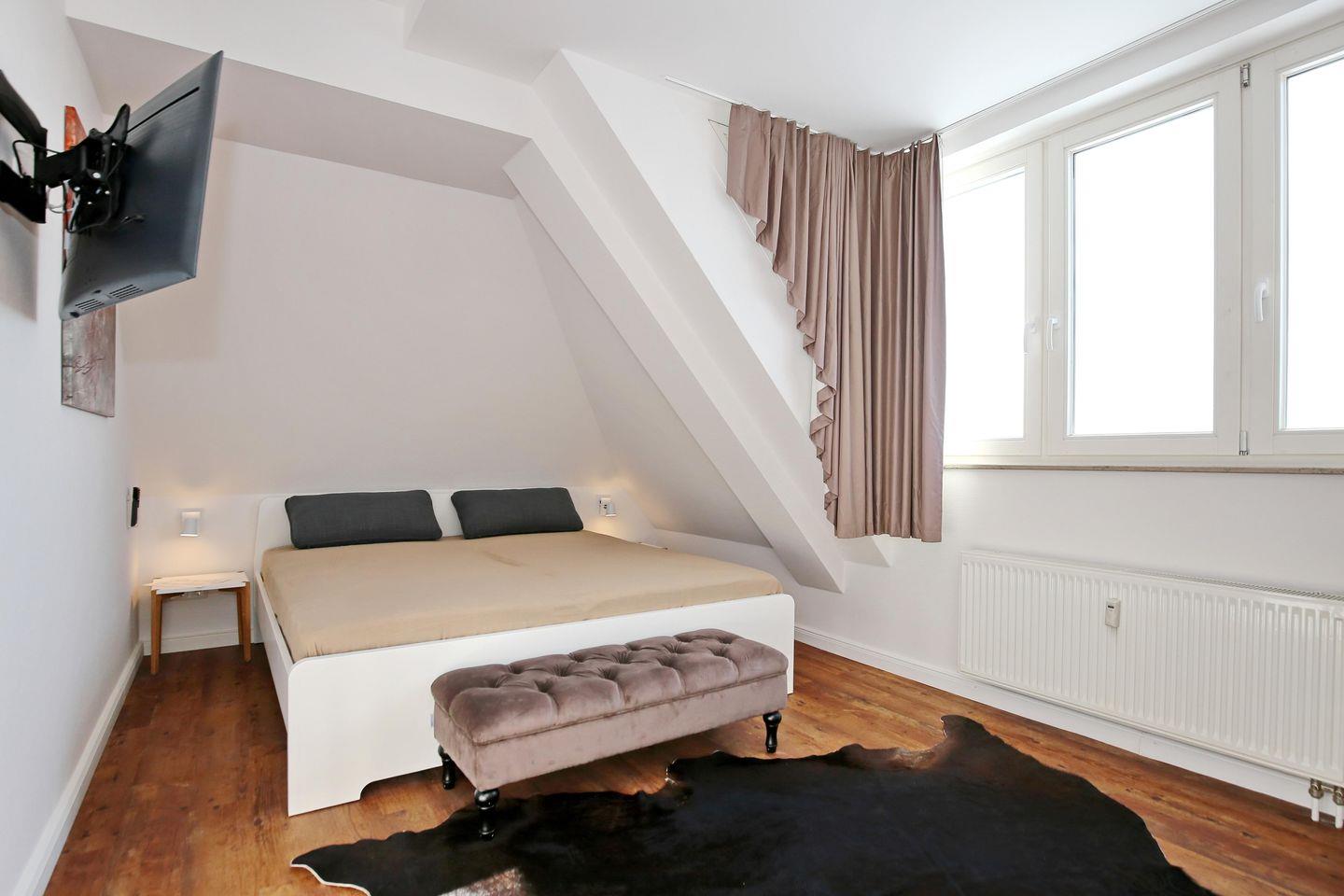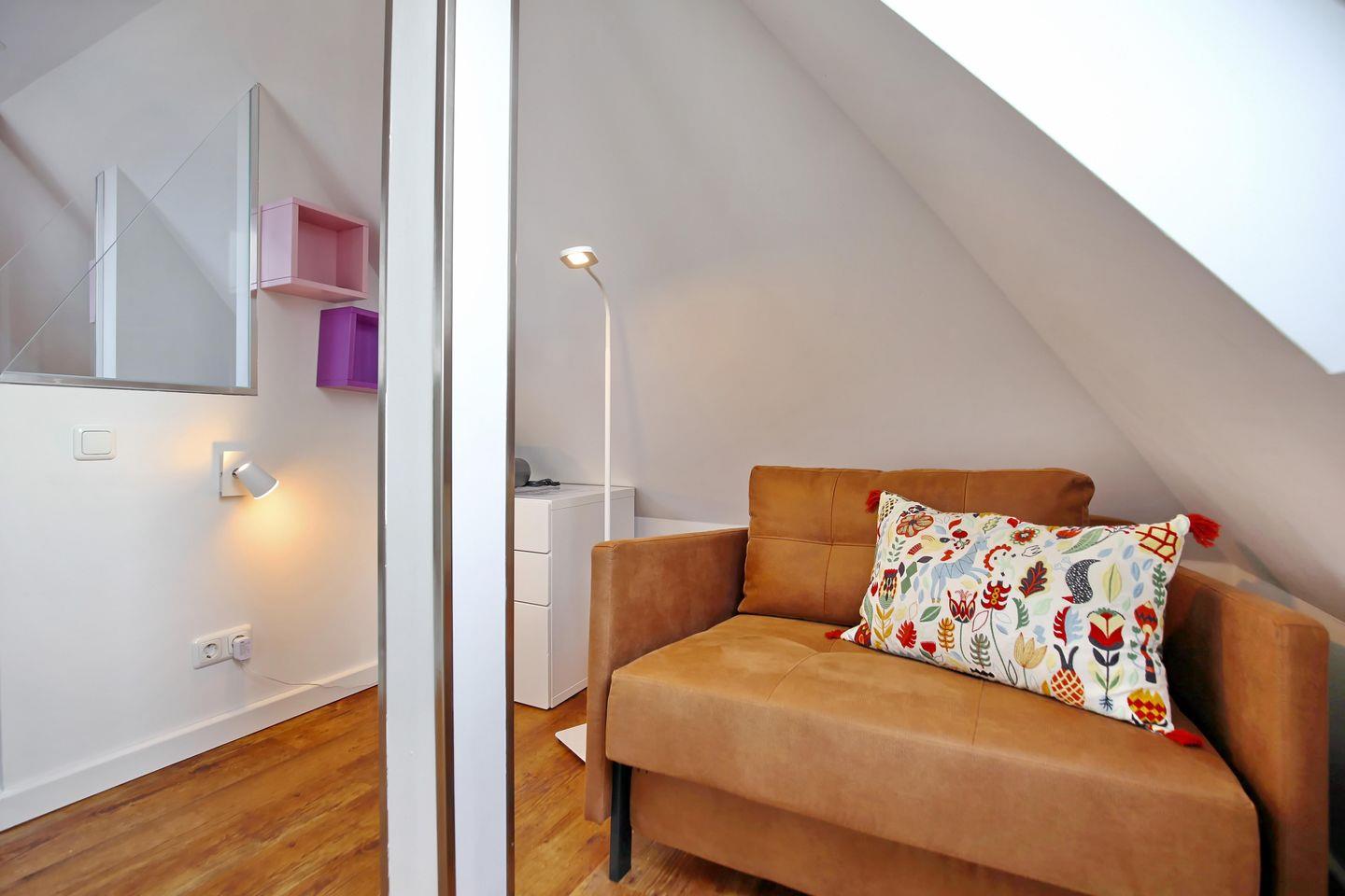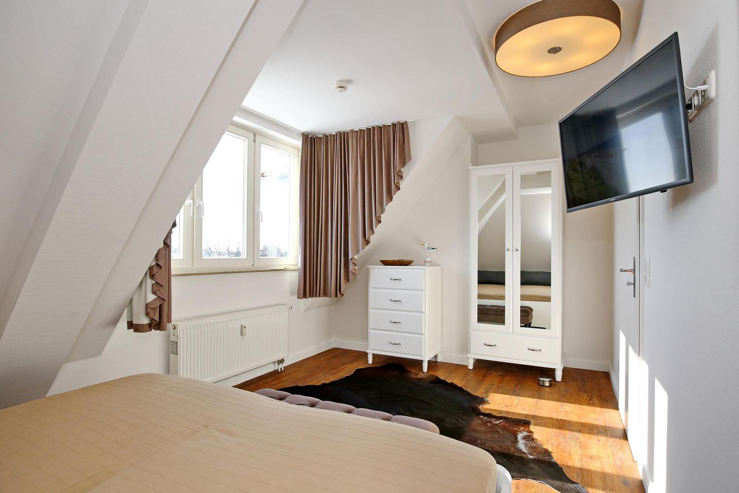 Im Spitzboden findest du darüber hinaus weitere geräumige Kommoden und Kleiderschränke für deine Urlaubsgarderobe, ebenso ausreichend Stauraum für deine Koffer und Taschen sowie eine Leseecke mit verschiedenen Büchern. Der Spitzboden steht nicht zu Schlafzwecken zur Verfügung.