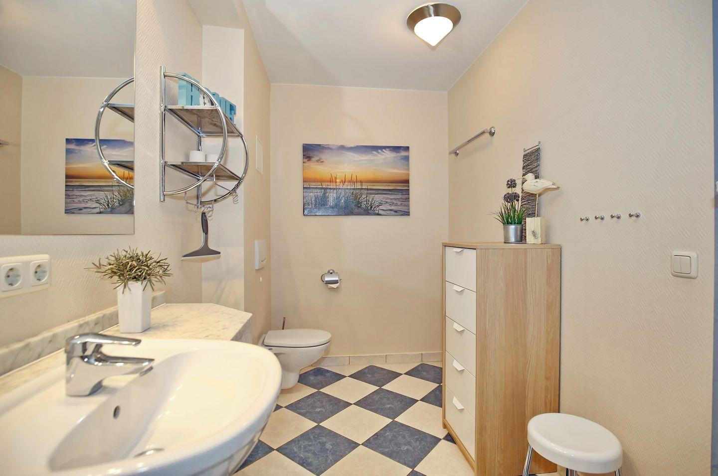 Auch ein Duschbad mit Föhn und Kosmetikspiegel steht dir hier zur Verfügung.