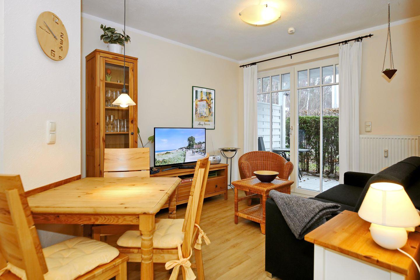 Die Ferienwohnung Nr. 35 in der zentralen Ferienanlage Strandstraße 32 in Kühlungsborn ist eine 2-Zimmer-Wohnung für bis zu 4 Personen. Die Wohnung liegt im Erdgeschoss und verfügt über eine Terrasse.
