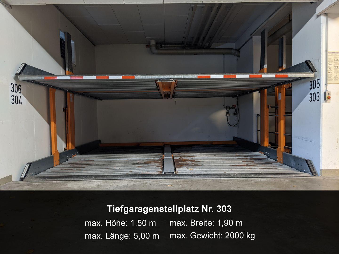 Zur Ferienwohnung gehört ein Tiefgaragenstellplatz Nr. 303 (max. Höhe 1,50 m).