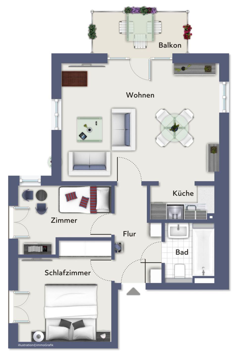 Die Wohnung Nr. 5, die über einen sehr schönen Süd-Balkon verfügt, ist ein komfortables, harmonisch abgestimmtes und voll ausgestattetes 3-Zimmer-Apartment.