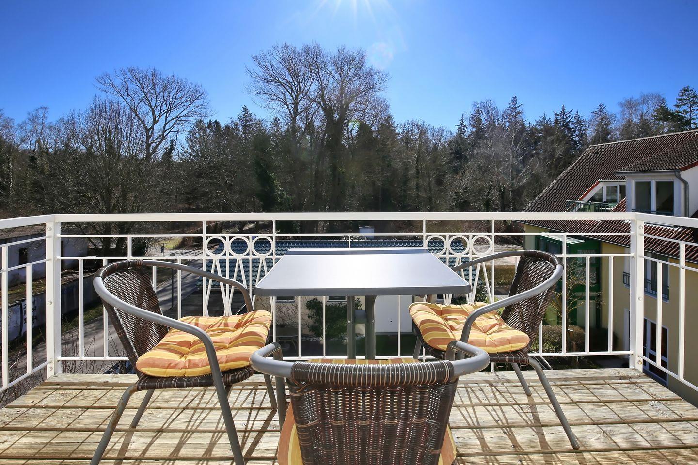 Die helle 3-Zimmer-Ferienwohnung befindet sich im 2. Obergeschoss auf der Südseite des Hauses Seepferdchen und wurde im Jahr 2020 komplett modernisiert. Die Wohnung bietet auf 55 m² bis zu 4 Personen Platz für einen erholsamen Urlaub und gliedert sich für dich in einen Wohn- und Essbereich, eine Küchenzeile sowie zwei Schlafzimmer und ein Wannenbad. Auf der Südterrasse kannst du in aller Ruhe den Tag ausklingen lassen und den Waldblick genießen!