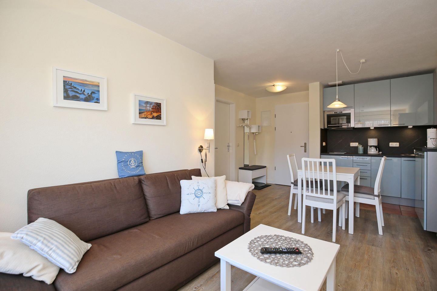Die Ferienwohnung Nr. 23 in der Ferienanlage „Strandstraße 32“ ist eine 2-Zimmer-Ferienwohnung für bis zu 3 Personen.