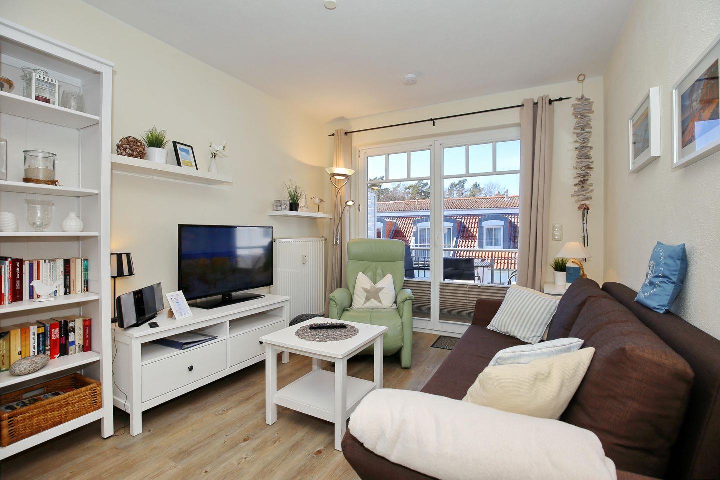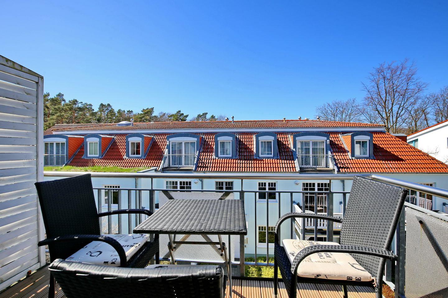 Die Ferienwohnung Nr. 23 in der zentralen Ferienanlage Strandstraße 32 in Kühlungsborn ist eine 2-Zimmer-Wohnung für bis zu 3 Personen. Die Wohnung liegt im 2. Obergeschoss und verfügt über einen Balkon.