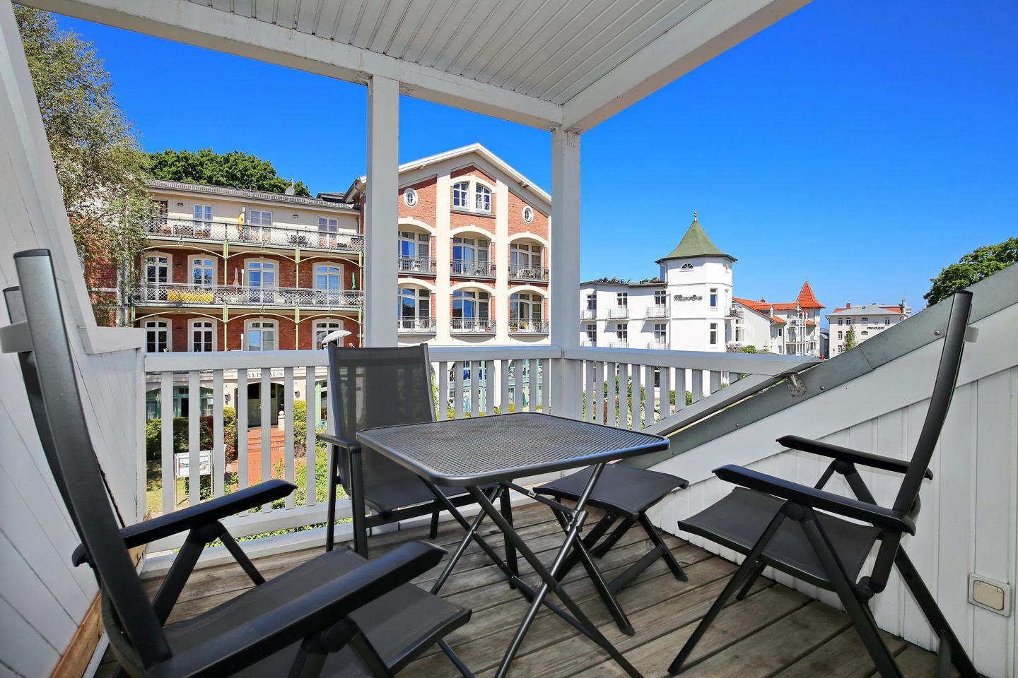 Die 2-Zimmer-Ferienwohnung in Kühlungsborn West befindet sich im Dachgeschoss der Anlage „Schaumburg“ und bietet auf 40 m² bis zu 3 Personen Platz für gemeinsame Urlaubstage. Genieße auf dem großen Balkon mit West-Ausrichtung die Sonnenstunden des Tages. Die Wohnung ist für dich in einen Wohn- und Essbereich, ein Schlafzimmer sowie ein Duschbad und eine Küchenzeile aufgeteilt.