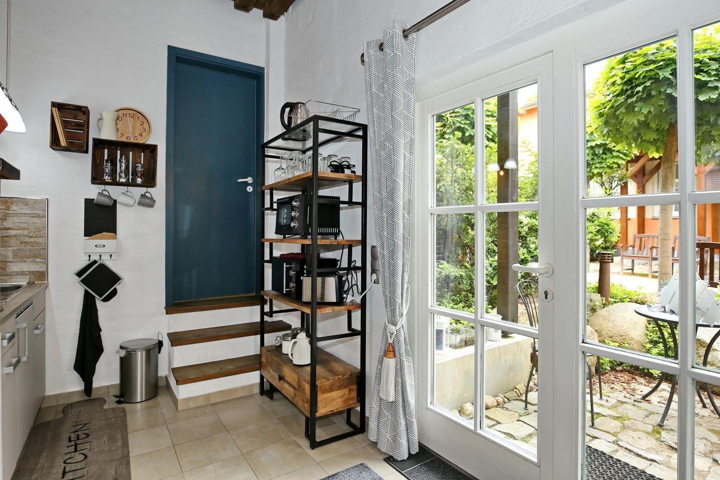 Die 41 m² große Ferienwohnung 14 „Auf den Höfen“ liegt im Erdgeschoss und bietet dir und bis zu 3 weiteren Personen (3 Erwachsene oder 2 Erwachsene + 2 Kinder) Platz für entspannte Tage. Die hölzerne Decke mit den sichtbaren Dachbalken verleiht der Wohnung eine urige Gemütlichkeit. Die Wohnfläche gliedert sich in einen kombinierten Wohn- und Essbereich mit Pantry-Küche, ein Schlafzimmer und ein Duschbad. Auf der kleinen West-Terrasse kannst du schöne Stunden genießen.