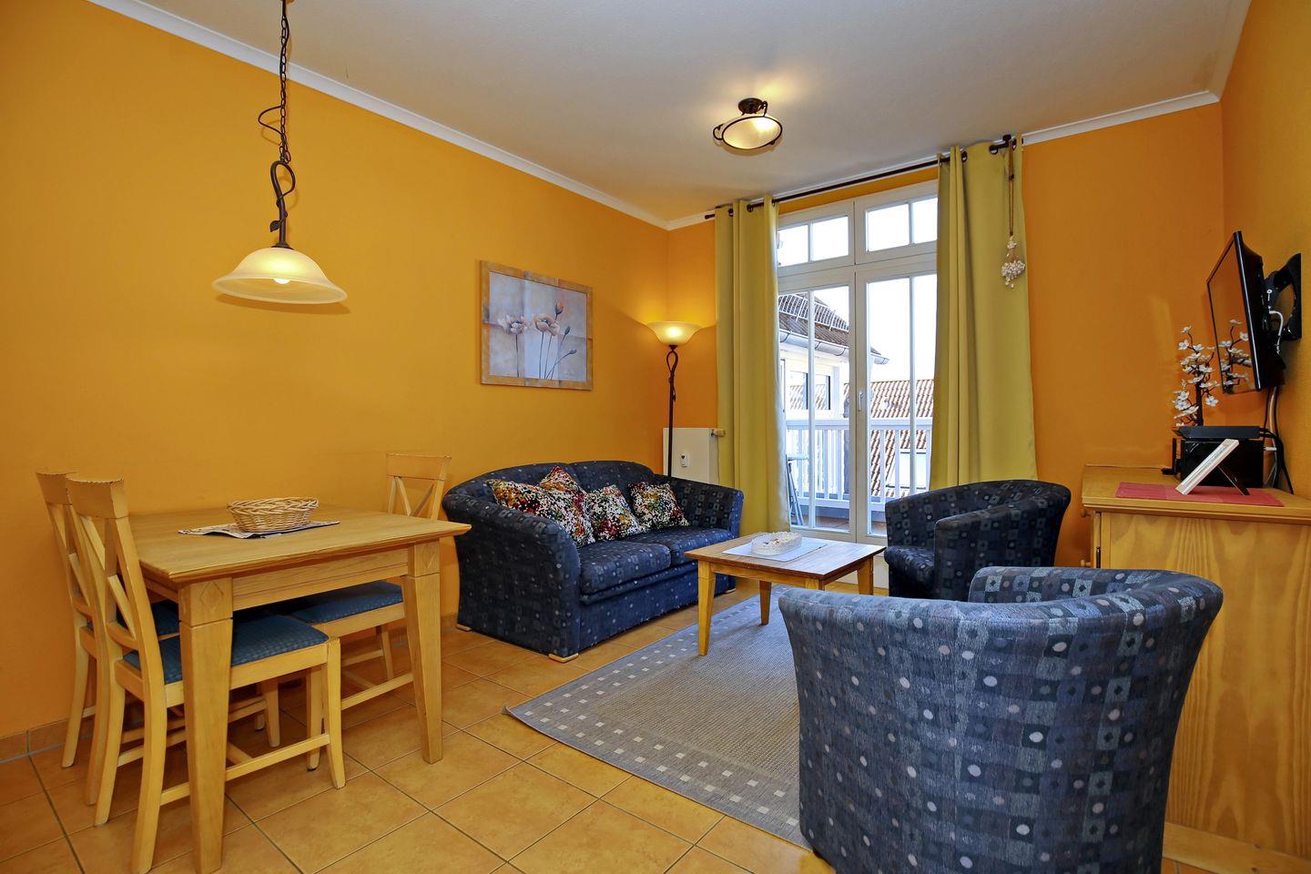 Die Ferienwohnung 34 im Haus 1 des “Dünenschloss” in Kühlungsborn ist eine 3-Zimmer-Wohnung für bis zu 4 Personen.