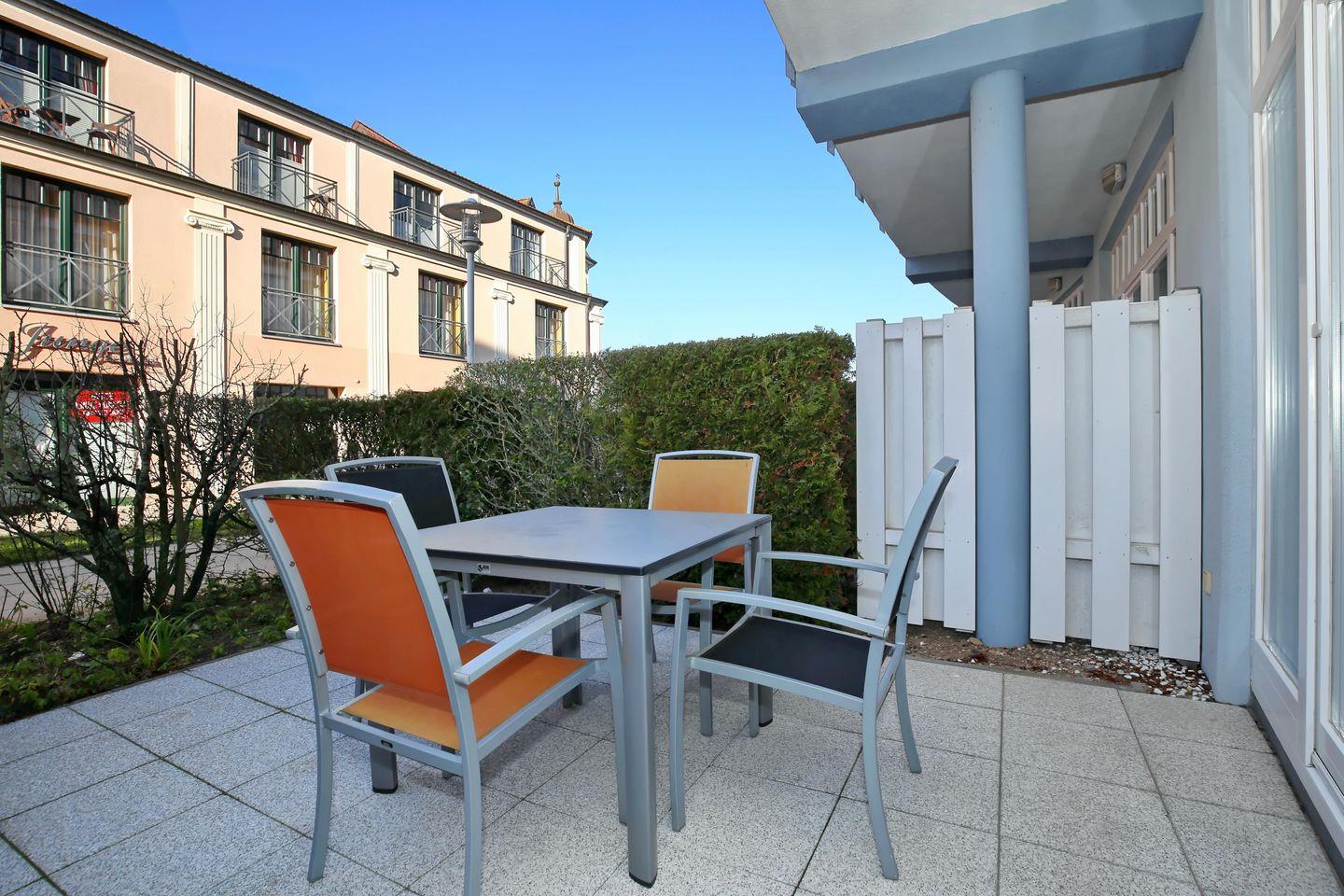 Die Ferienwohnung 019 im Haus Meeresblick ist eine 45 m² große 2-Zimmer-Wohnung für bis zu 4 Personen. Auf der West-Terrasse können Sie einen Teilseeblick und die Nachmittagssonne genießen. Zum Haus gehören 2 Fahrstühle.