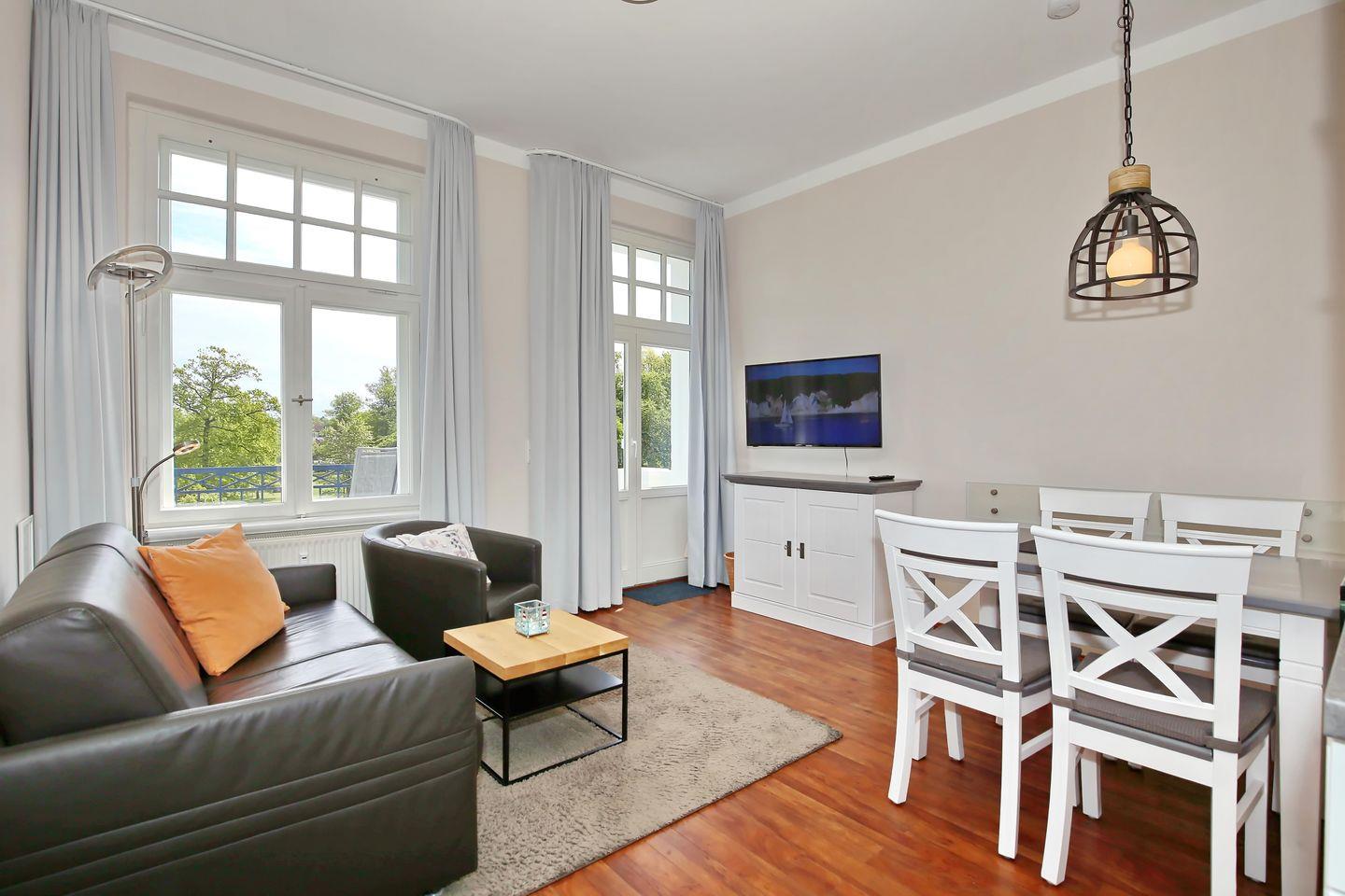 Die Wohnung Nr. 34 im Haus am Park ist eine 2-Zimmer-Ferienwohnung für bis zu 3 Personen mit einer Größe von etwa 44 m². Die Wohnung befindet sich in der 2. Etage auf der Ostseite des Hauses und ist mit einem Fahrstuhl bequem zu erreichen.