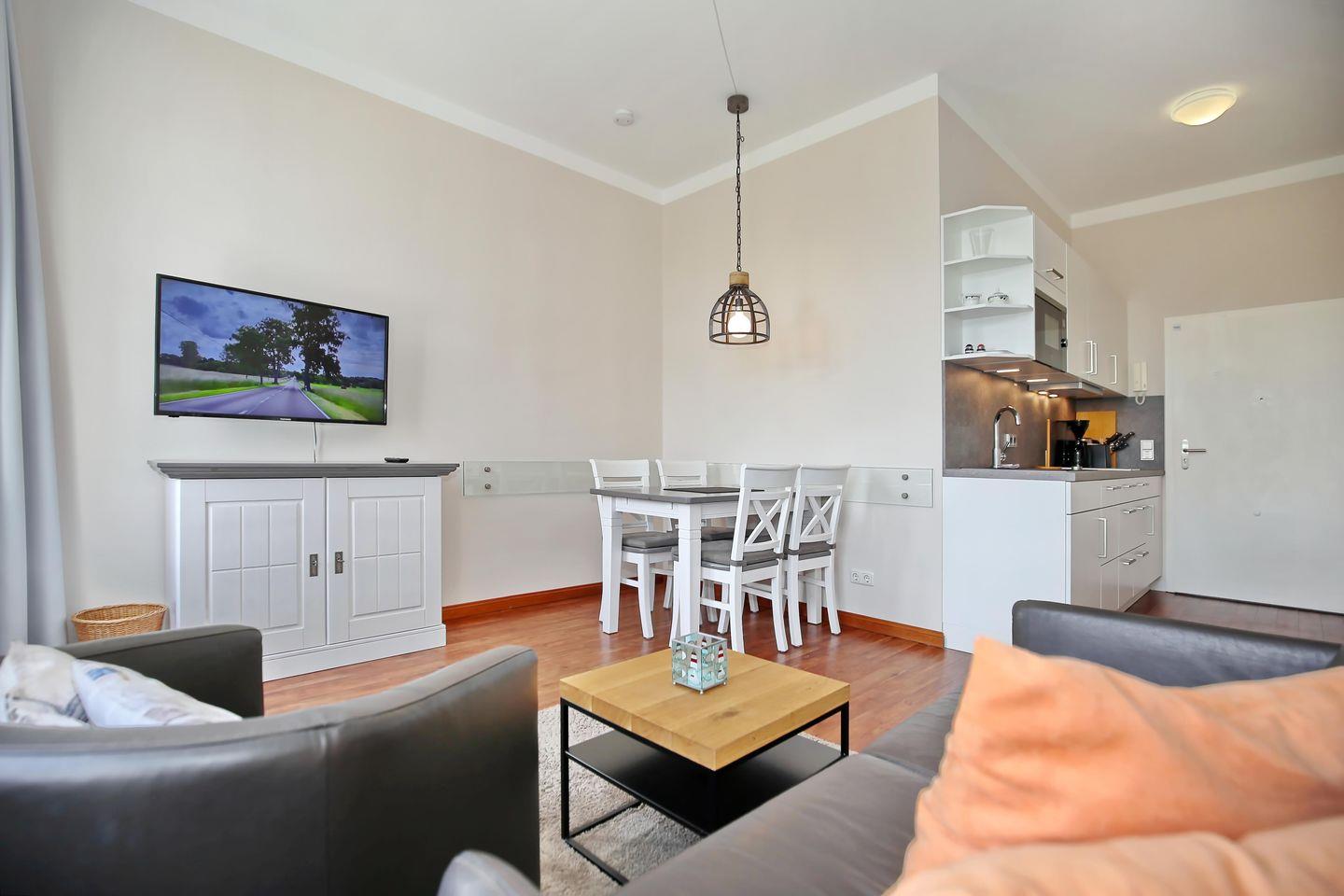 Die Ferienwohnung HaP/34 in der Ferienanlage „Haus am Park“ ist eine 2-Zimmer-Wohnung für bis zu 3 Personen.