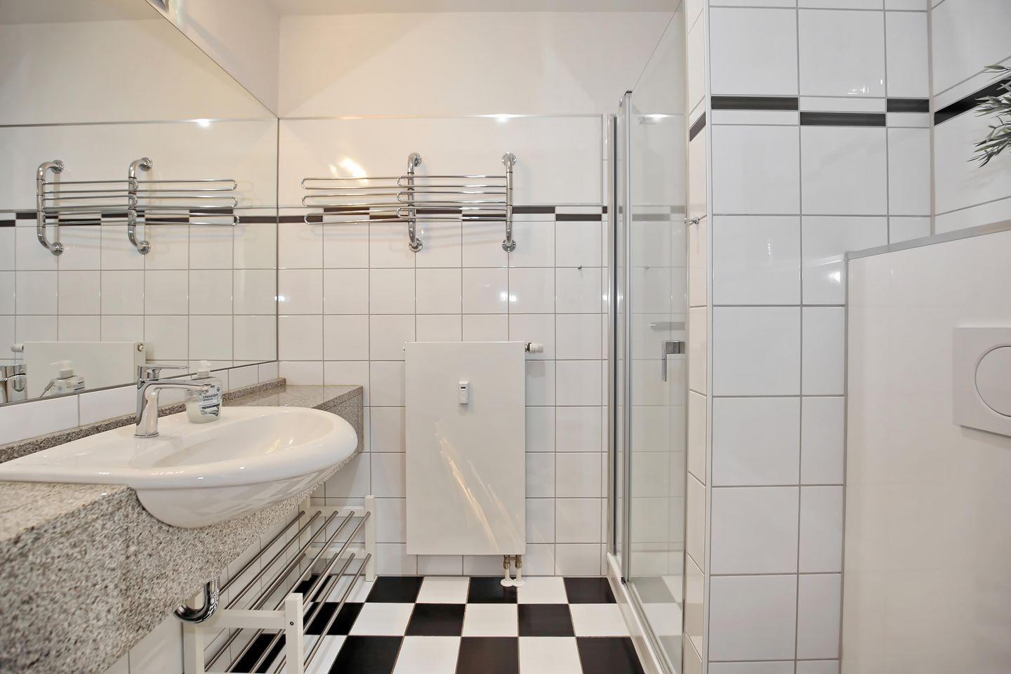 Die Ferienwohnung verfügt über ein gefliestes Duschbad mit WC. Für deine Waschutensilien findest du genügend Platz auf dem großzügigen Waschtisch. Ein Föhn komplettiert die Ausstattung des Bades. Im Wohn- und Schlafzimmer wurde Vinyl-Boden verlegt. In dieser Nichtraucherwohnung sind Haustiere nicht erlaubt.