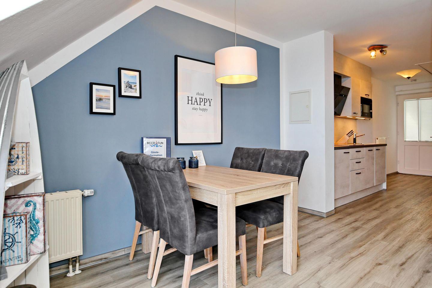 Die Küchenzeile ist voll ausgestattet mit einem 4-Platten-Cerankochfeld, einem Kühlschrank mit Gefrierfach, einer Spülmaschine und einer Mikrowelle. Selbstverständlich stehen dir eine Kaffeemaschine, ein Toaster und ein Wasserkocher zur Verfügung.