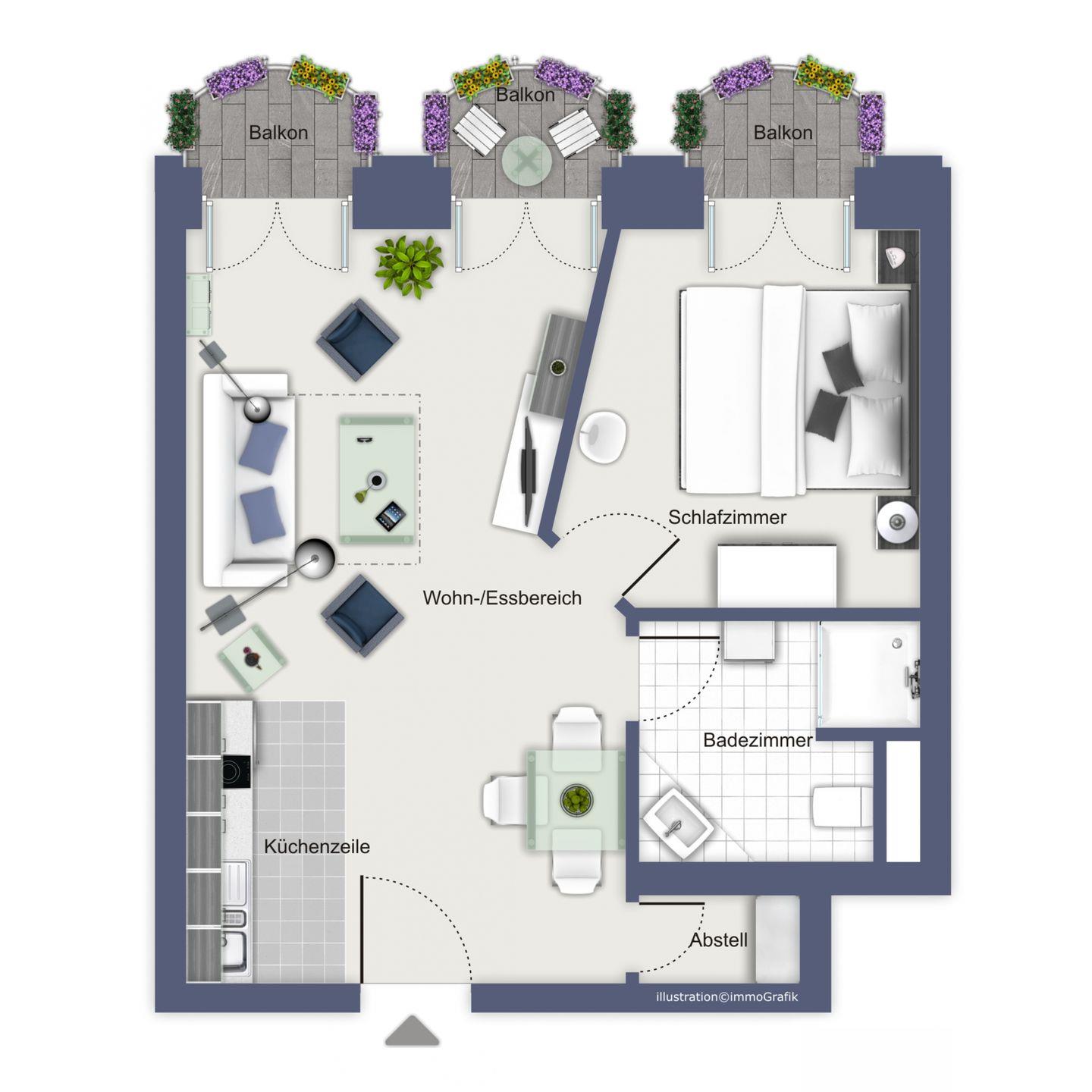 Die Ferienwohnung HaP/27 in der Ferienanlage „Haus am Park“ ist eine 2-Zimmer-Wohnung für bis zu 3 Personen.