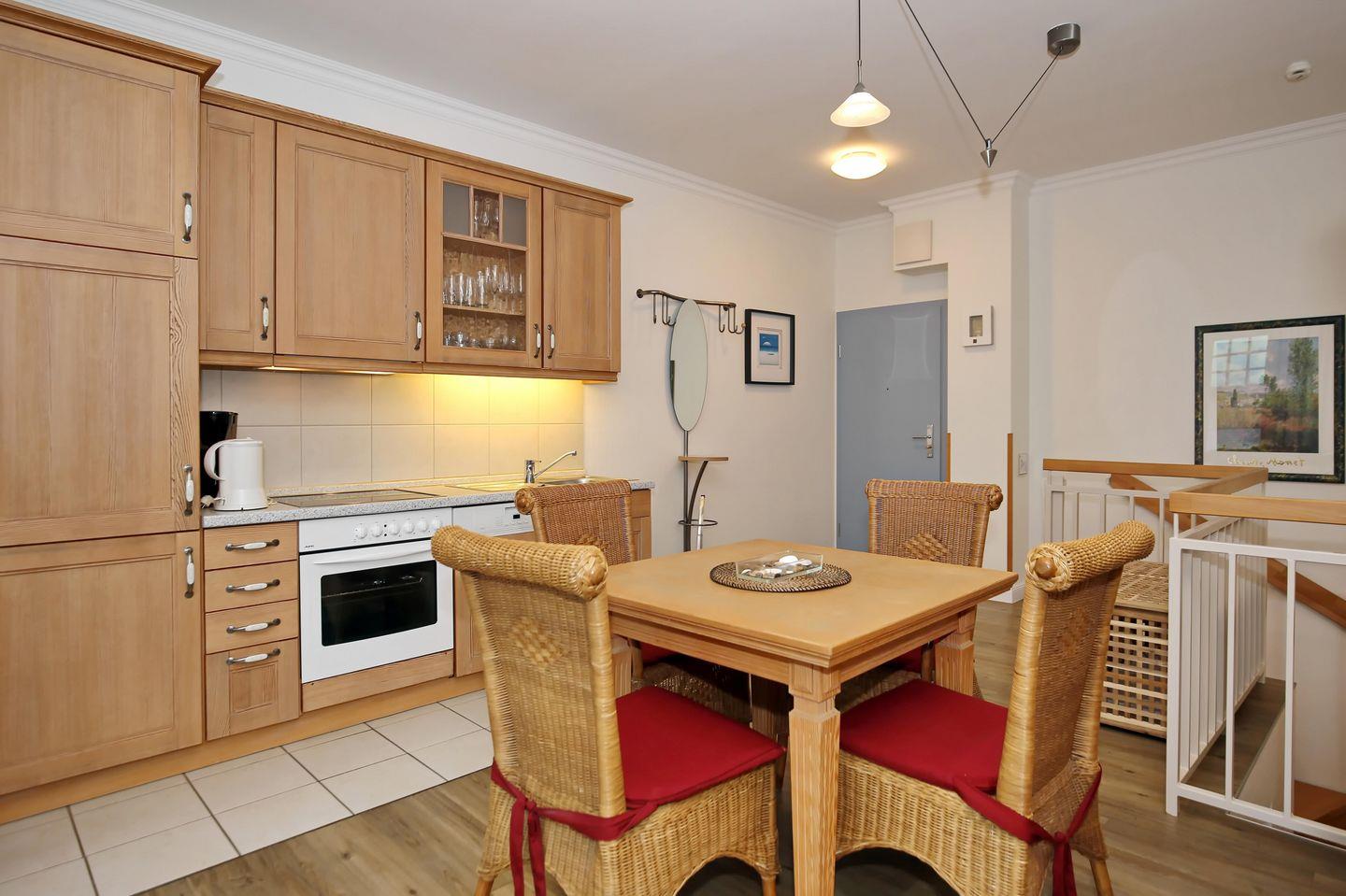 Die Wohnung Nr. 1 im Haus "La Mer" ist ein geräumiges 2-Zimmer-Apartement mit einer Größe von etwa 53 m². Die Wohnung verläuft über 2 Etagen. Eine Treppensicherung für Kinder ist vorhanden. Ihre Fahrräder können sicher im Fahrradraum abgestellt werden.