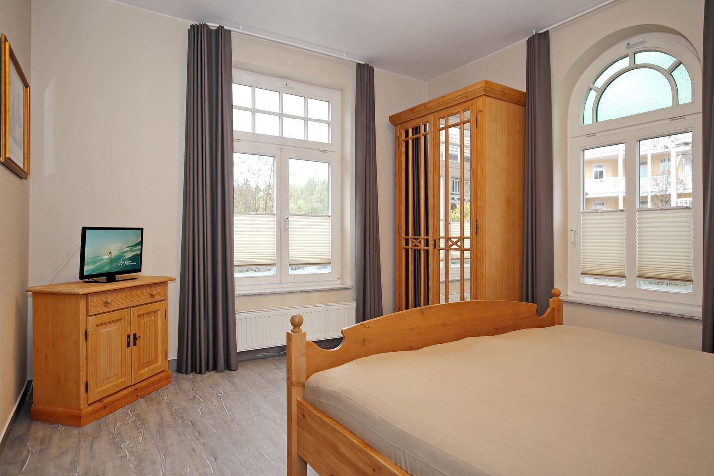 Das Schlafzimmer ist mit einem Doppelbett (2 x 90 x 200 cm) und einem Kleiderschrank sowie einem 2. Flachbild-TV ausgestattet.