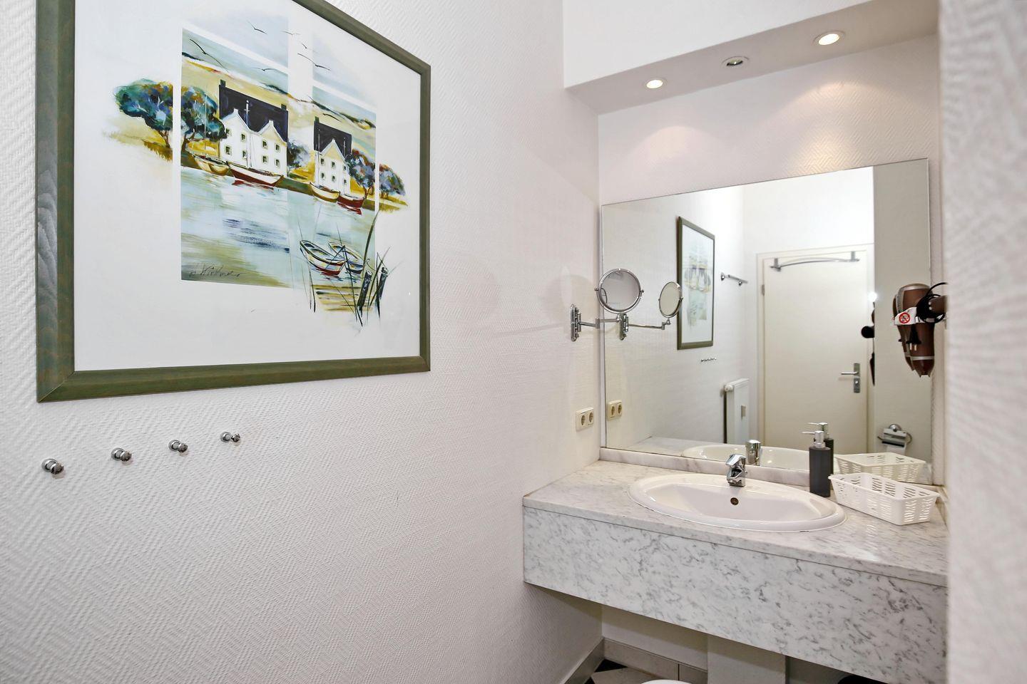 Die Ferienwohnung verfügt selbstverständlich auch über ein gefliestes Duschbad mit WC, einen Kosmetikspiegel und einen Föhn.