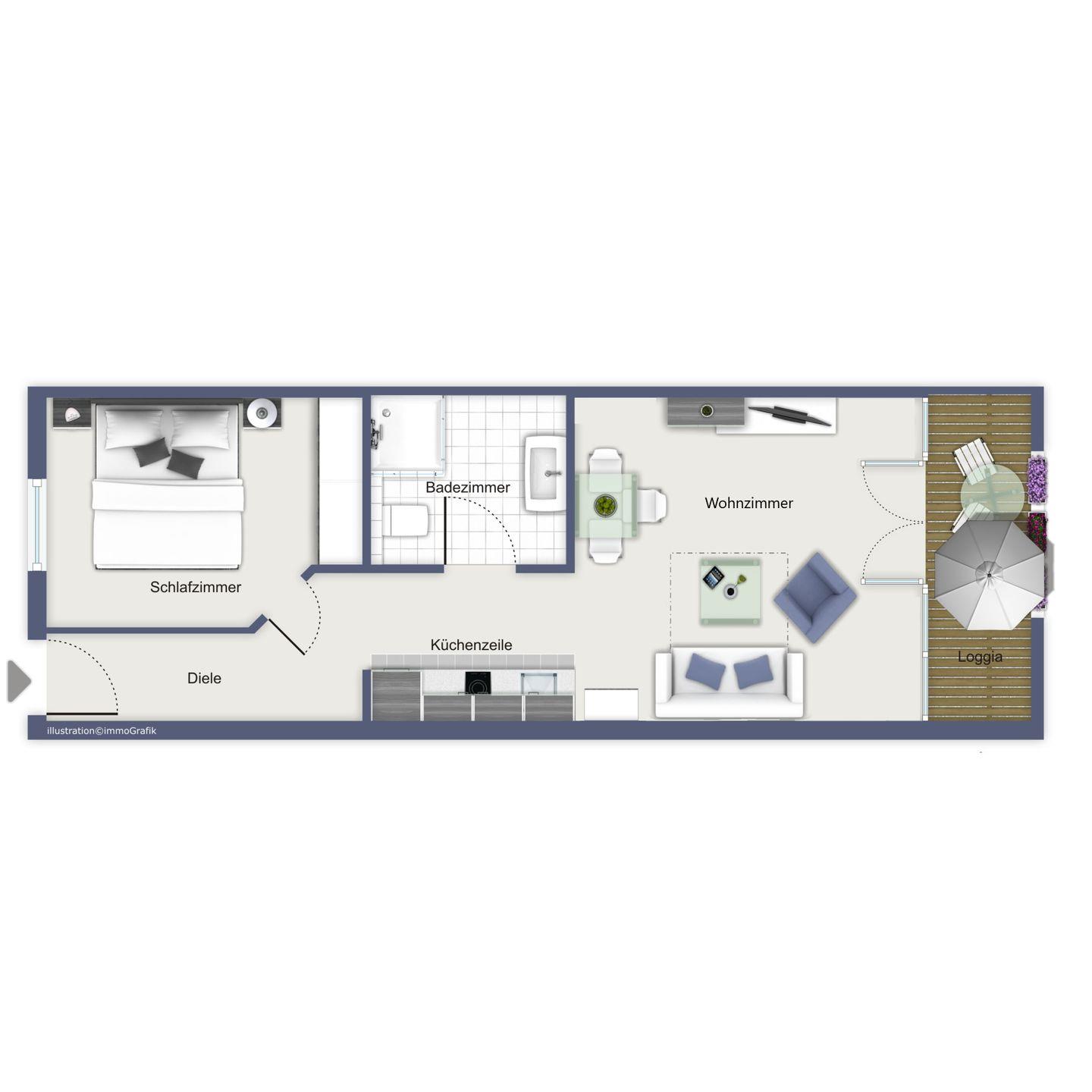 Die Ferienwohnung 310 in der Ferienanlage Meeresblick ist eine 2-Zimmer-Wohnung für bis zu 4 Personen.