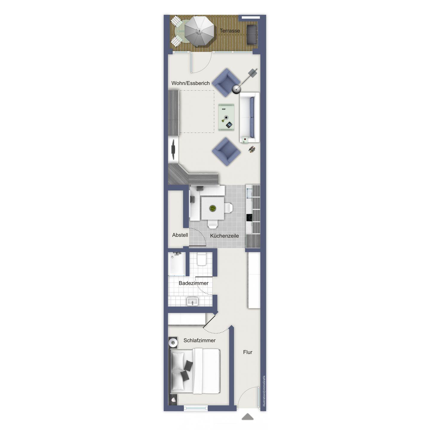 Die Ferienwohnung 006 im Haus Meeresblick ist eine 2-Zimmer-Wohnung für bis zu 4 Personen.