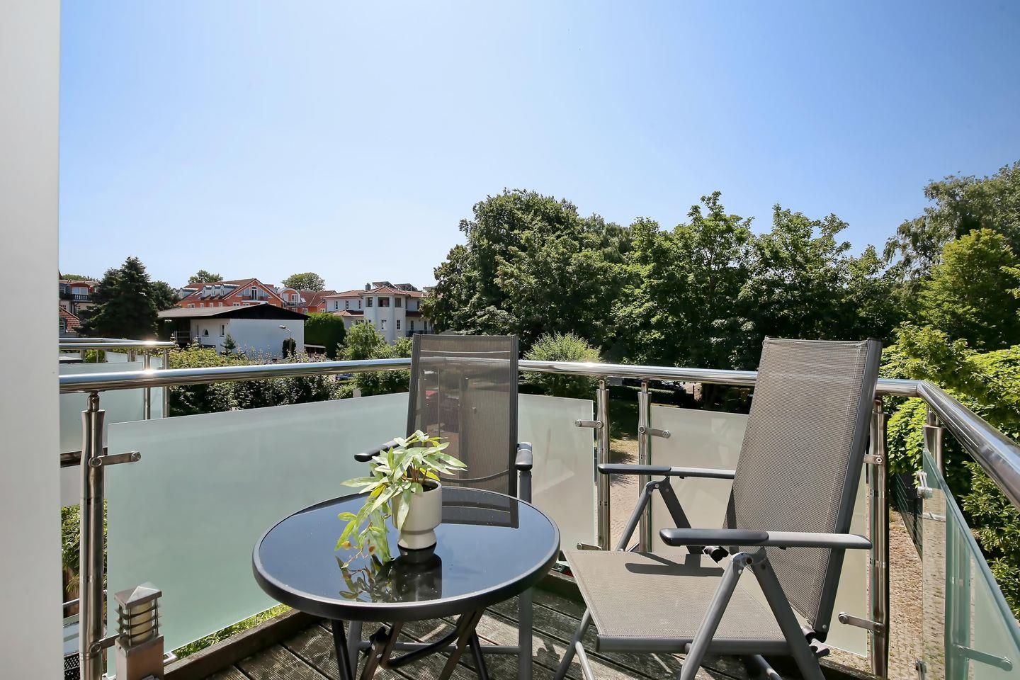Die 2-Zimmer-Ferienwohnung für bis zu 4 Personen liegt im 1. Obergeschoss des Hauses und verfügt über zwei Balkone - einer mit Nordausrichtung und einer mit Südausrichtung. Die 42 m² Wohnfläche teilen sich in einen kombinierten Wohn- und Essbereich, eine Küchenzeile, ein Duschbad und ein Schlafzimmer auf. Zum schönen Ostseestrand und der Promenade sind es nur 50 Meter.
