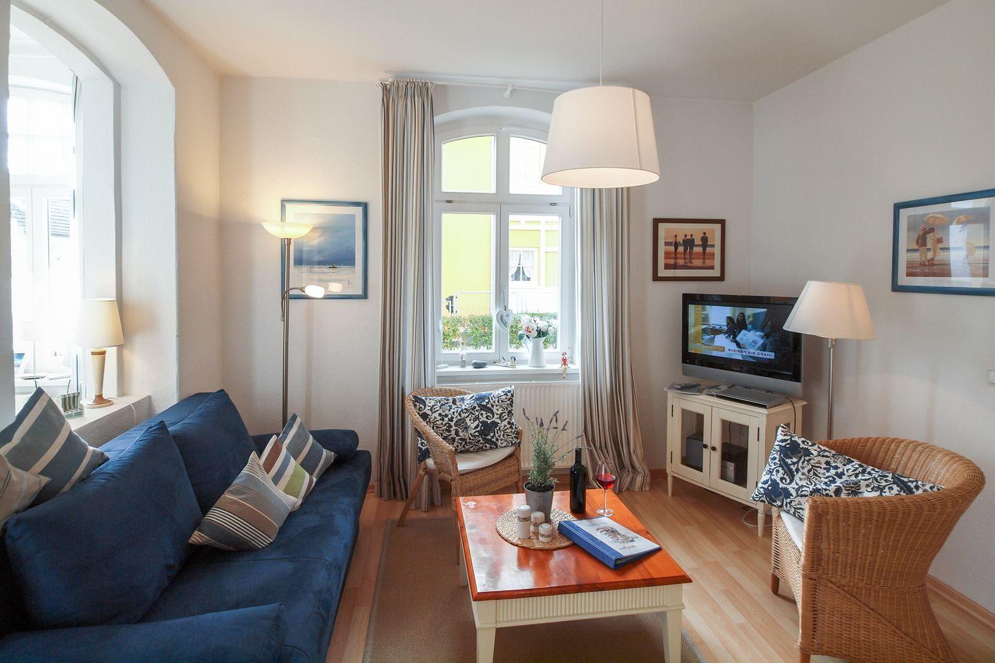 Dank der hohen Fenster hat dieses mit viel Liebe fürs Detail eingerichtete Urlaubsdomizil einen ganz besonderen Charme. Über wenige Stufen gelangst du in die im Hochparterre gelegene, 47 m² große Ferienwohnung. Erwartet wirst du von einem separaten Schlafzimmer, einem Duschbad, einem hellen Wohnbereich mit angrenzender Küchenzeile und gemütlicher Essecke. Zum feinen Kühlungsborner Sandstrand sind es von hier aus nur ca. 300 Meter.
