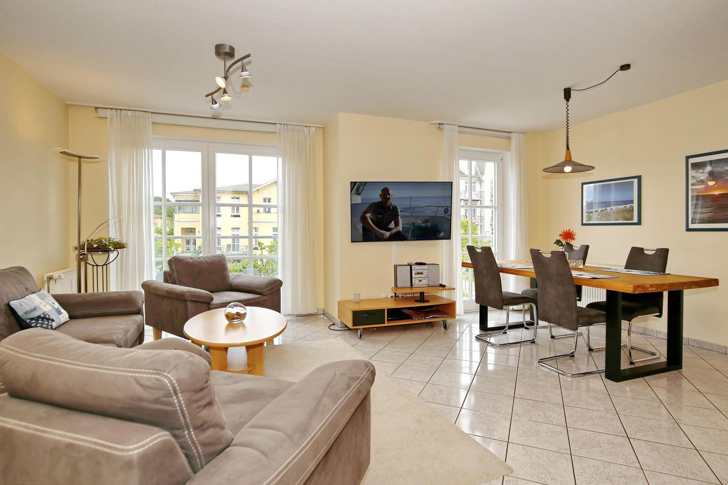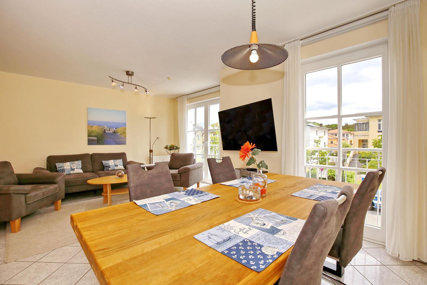 Du wohnst zentral in Kühlungsborn West. In dieser hellen Ferienwohnung stehen dir ein großzügiger Wohnbereich, ein Schlafzimmer, eine separate Küche sowie ein Badezimmer zur Verfügung. Mit einer Größe von etwa 66 m² bietet die Wohnung ausreichend Platz für 4 Personen. Ein Fahrstuhl bringt dich bequem bis ins 1. Obergeschoss zu deiner Wohnung. Zum Strand sind es nur ca. 150 Meter.