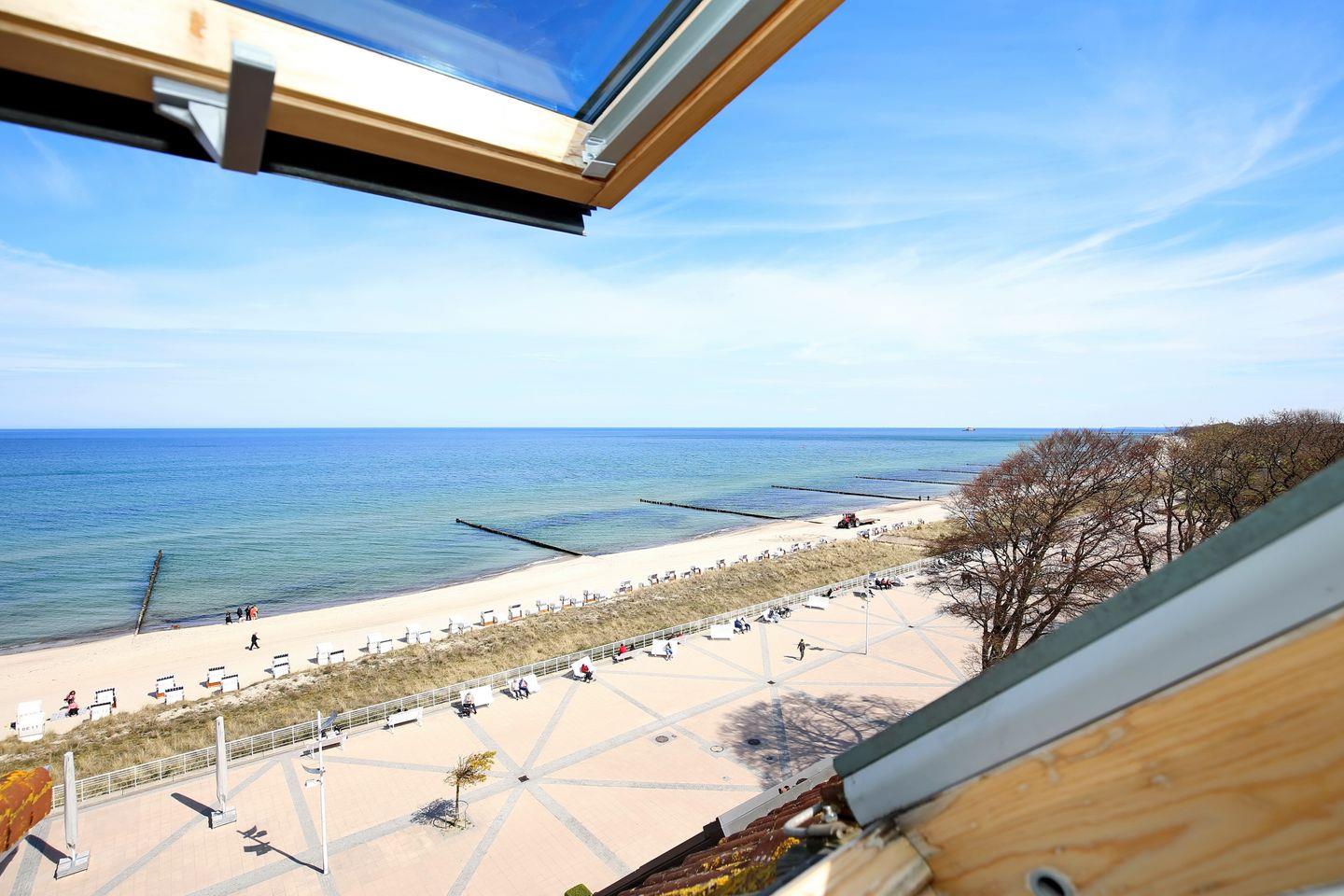 Das Apartment Nr. 515 in der Ferienanlage Meeresblick ist eine 3-Zimmer-Wohnung für bis zu 4 Personen. Die Wohnung liegt in der 5. Etage auf der Nordseite des Hauses und verläuft über 2 Etagen. Der Balkon bietet einen wunderschönen Blick auf die Ostsee.