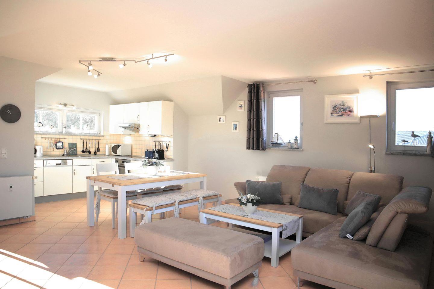 Das Bad verfügt über eine Dusche und ein WC. In der gesamten Ferienwohnung sind Feinsteinfliesen verlegt. In dieser Nichtraucherwohnung ist ein Hund erlaubt.